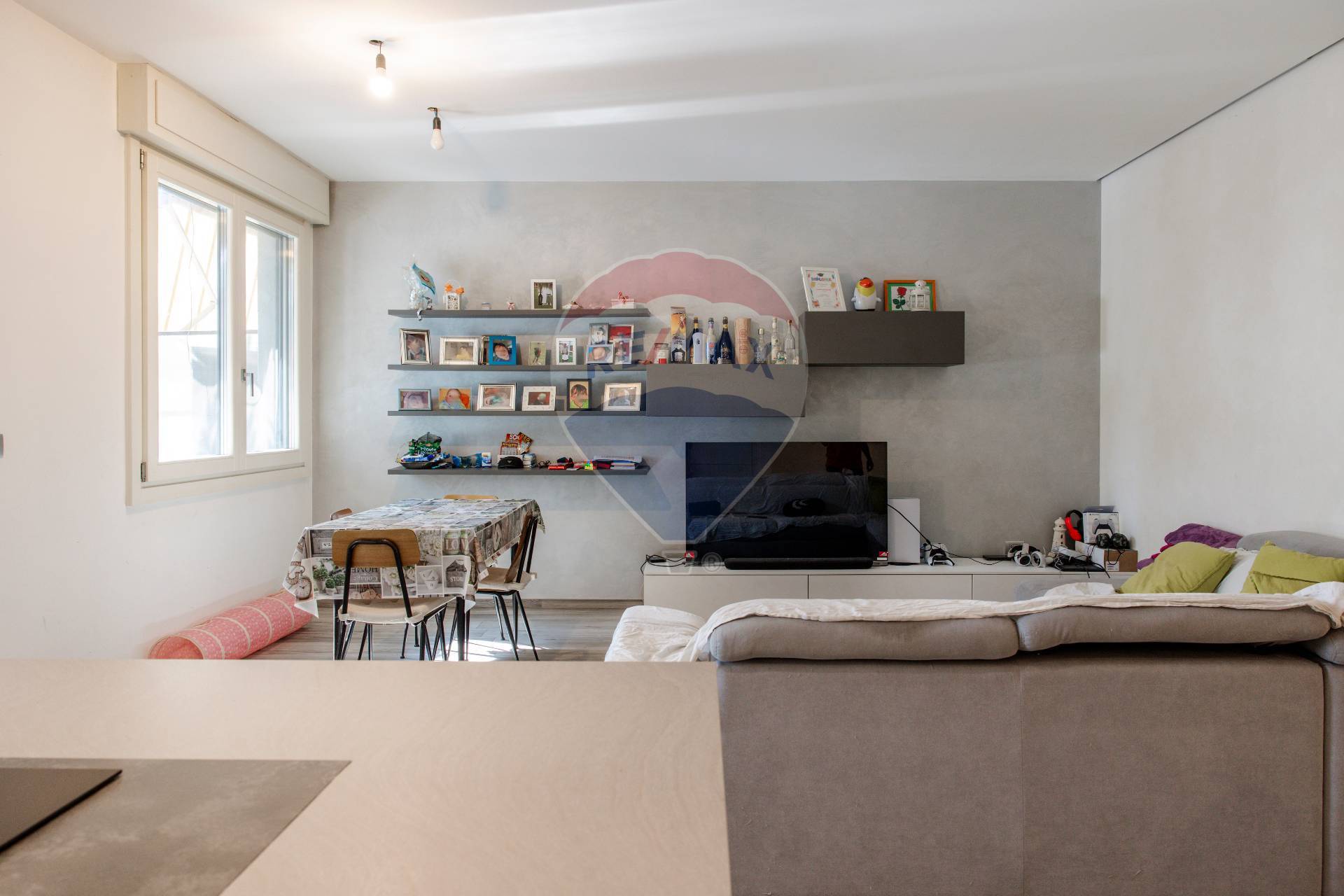 L'abitazione composta da 3 locali, di cui un'ampio living con cucina a vista, 2 camere da letto con cabina armadio, lavanderia e 2 bagni.