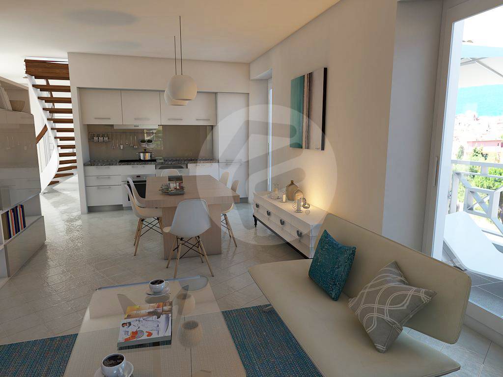 Al piano soprastante, raggiungibile con scala interna, si accede ad un grande locale mansardato con gradevole affaccio sul mare e ampio e luminoso terrazzo laterale.