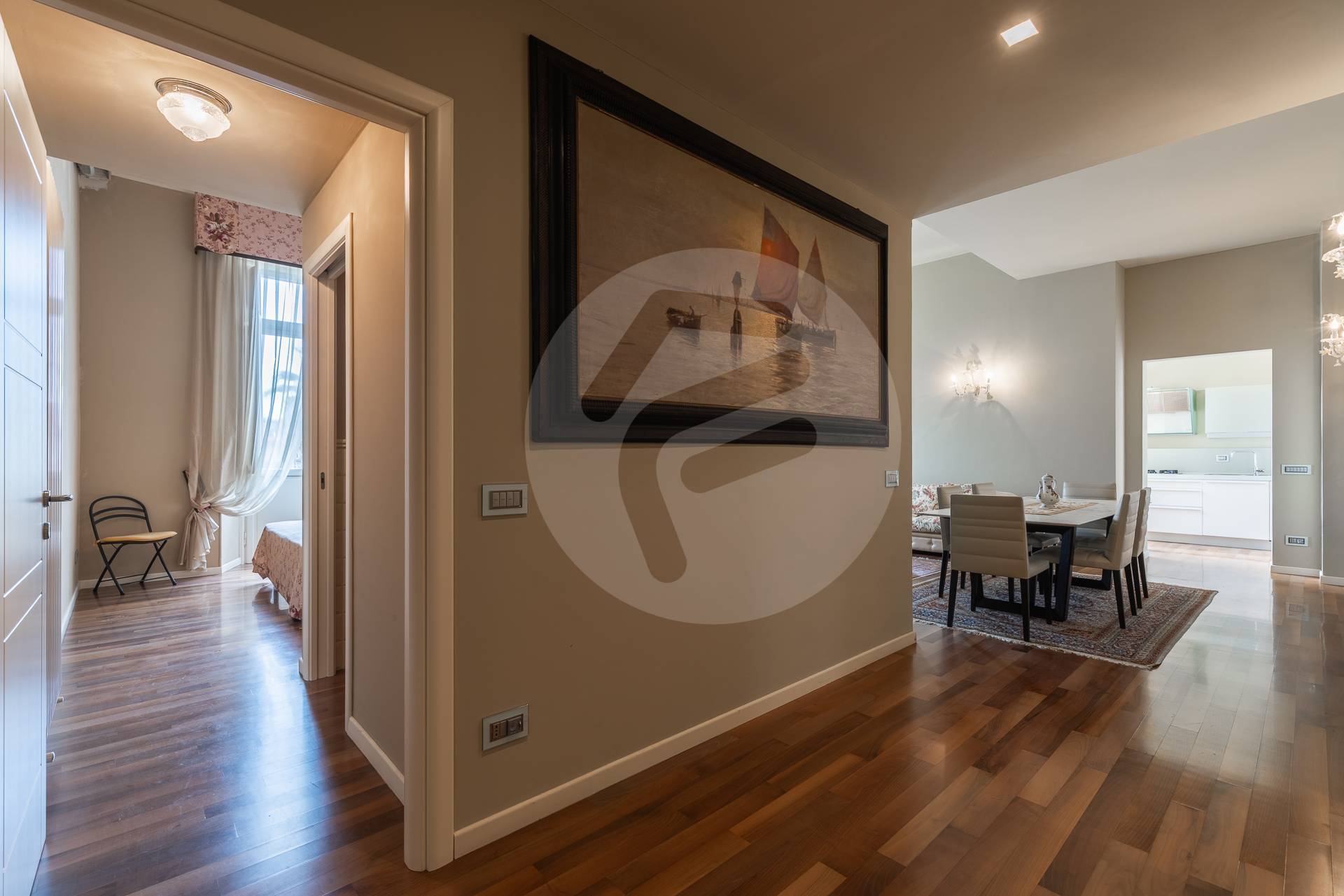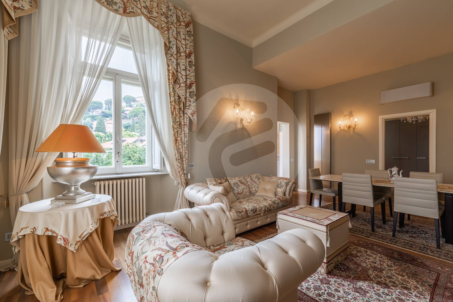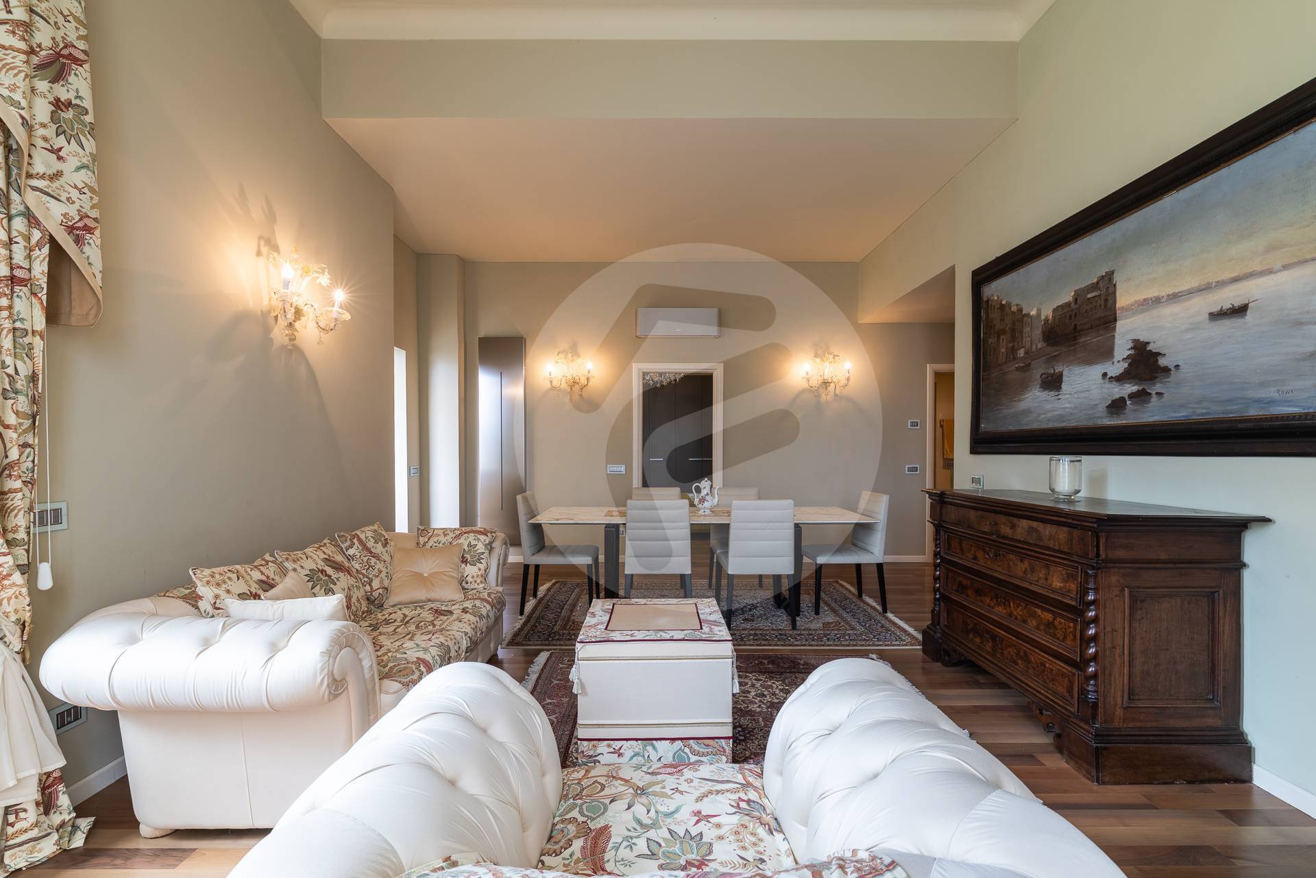 In elegante villa storica, completamente restaurata, a due passi dal mare e dal centro, proponiamo prestigioso appartamento sito al secondo piano servito da ascensore.