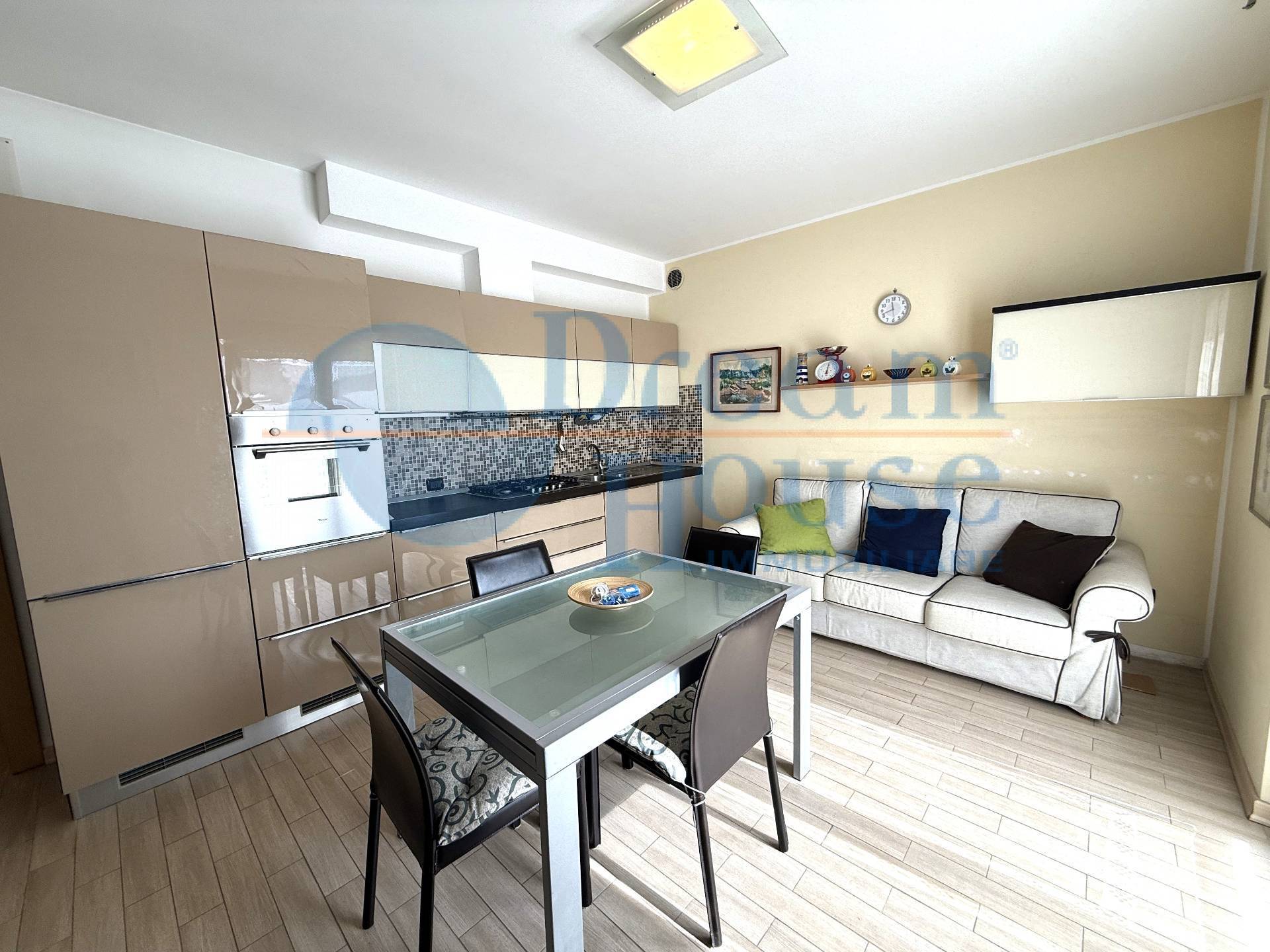 Lingresso si apre su un luminoso soggiorno con cucina a vista, un ambiente accogliente e funzionale che conduce direttamente al balcone con una piacevole vista mare. Sempre su questo livello troviamo una comoda camera matrimoniale e un bagno finestrato con doccia.