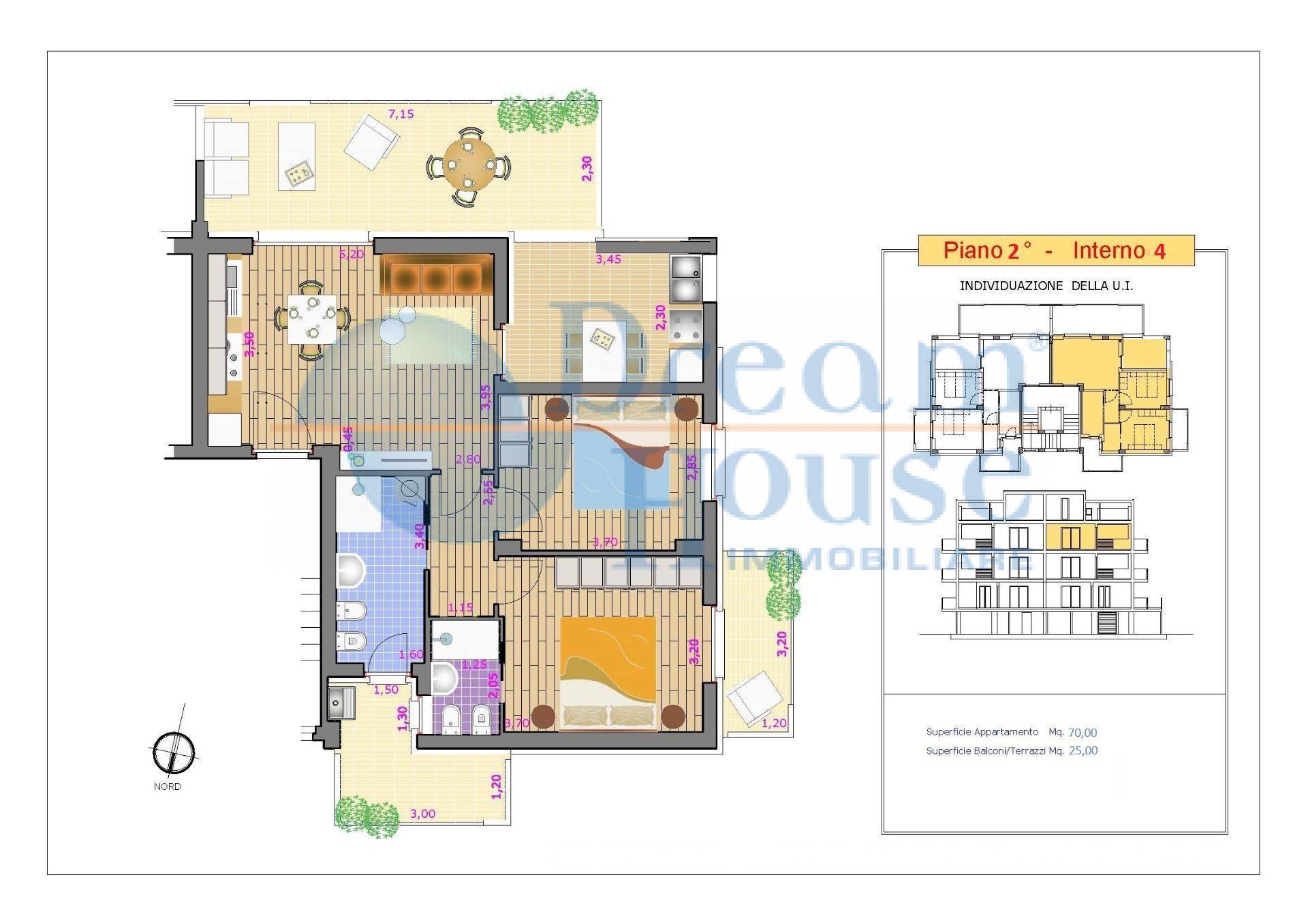 Labitazione sviluppa una superficie di circa 70 mq, oltre a 25 mq tra terrazzo e balconi, perfetti per vivere anche gli spazi esterni in totale relax.