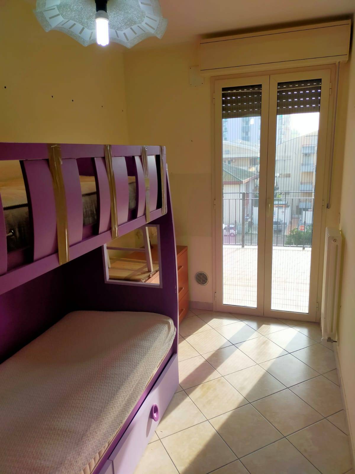 L'appartamento si compone di ingresso-soggiorno con angolo cottura, due camere da letto matrimoniali, una cameretta con un letto a castello e due bagni entrambi con finestra e con cabina doccia.