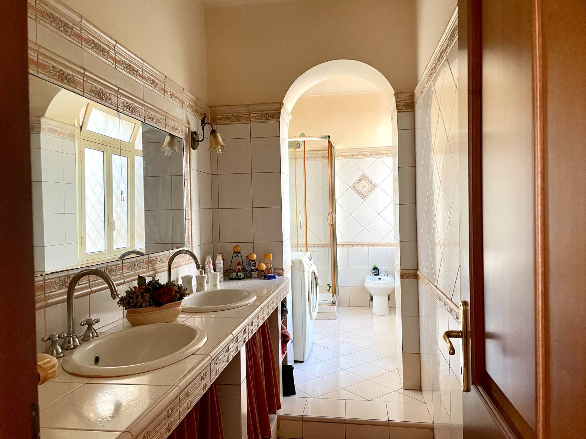 L'appartamento composto da ingresso, ampio ed elegante soggiorno con doppio affaccio sul balcone abitabile, bagno per gli ospiti in muratura con doppio lavabo e doccia, 2 camere da letto matrimoniali con balcone annesso, una camera singola con balcone e ripostiglio, bagno finestrato con vasca.