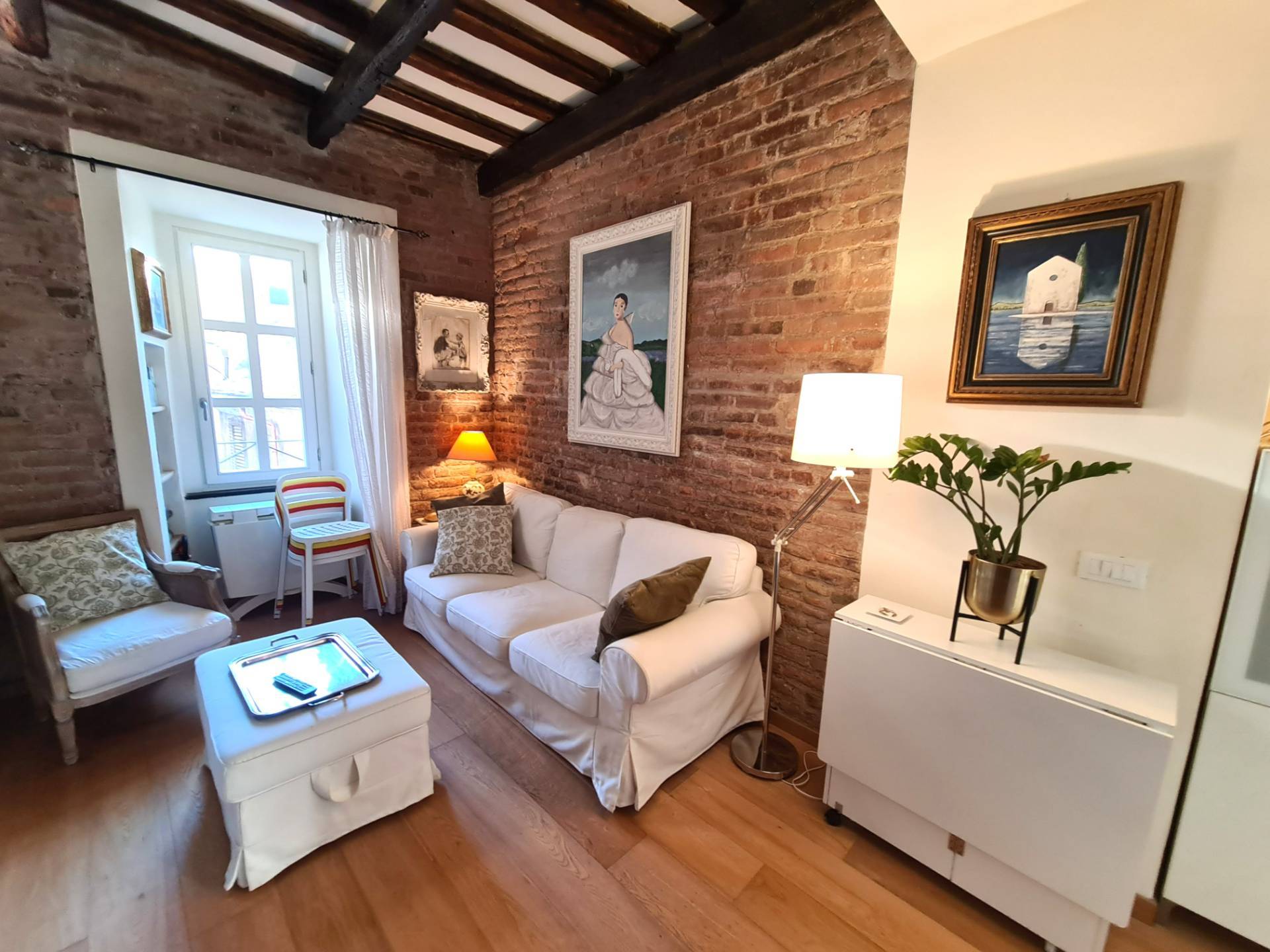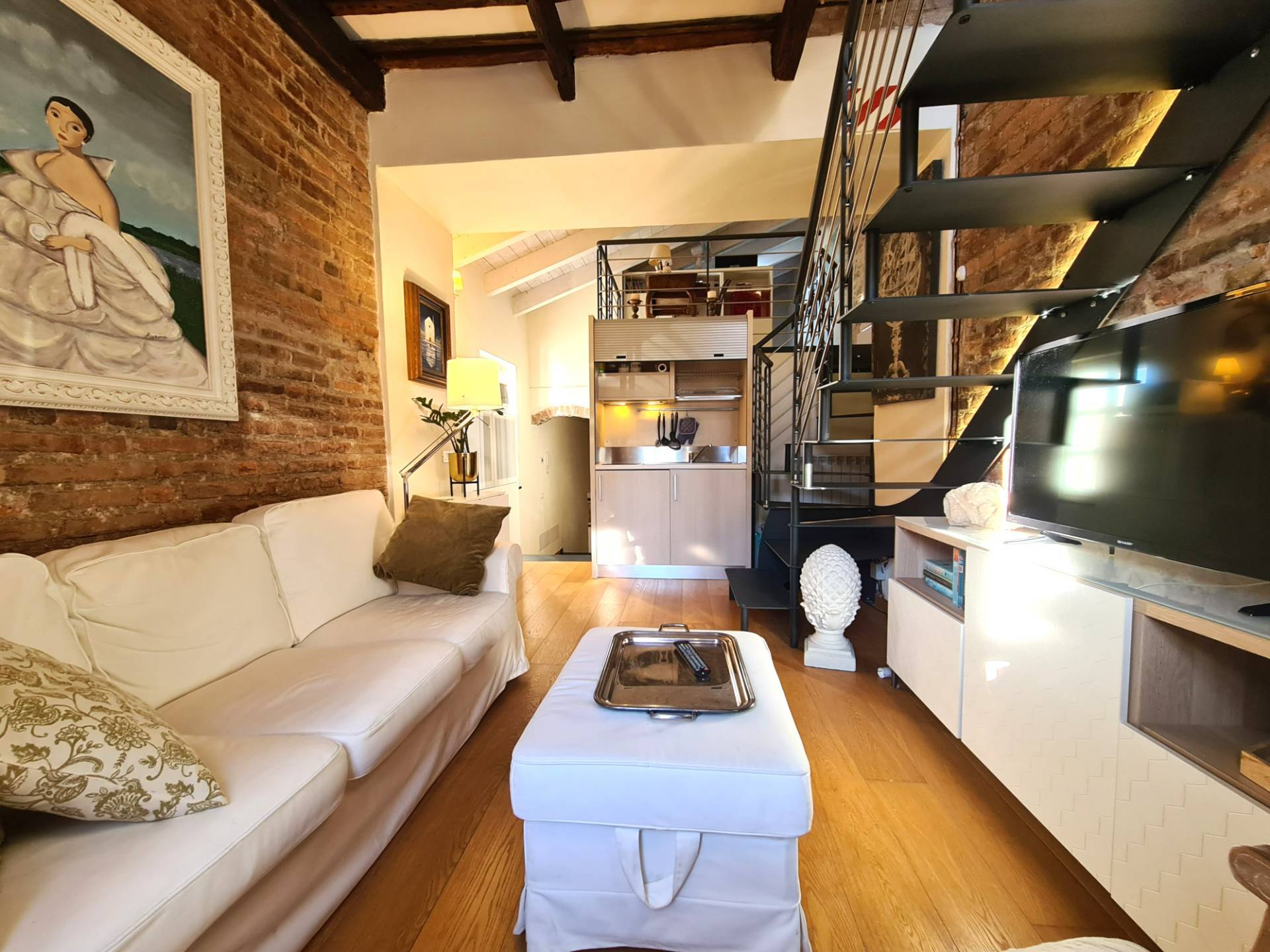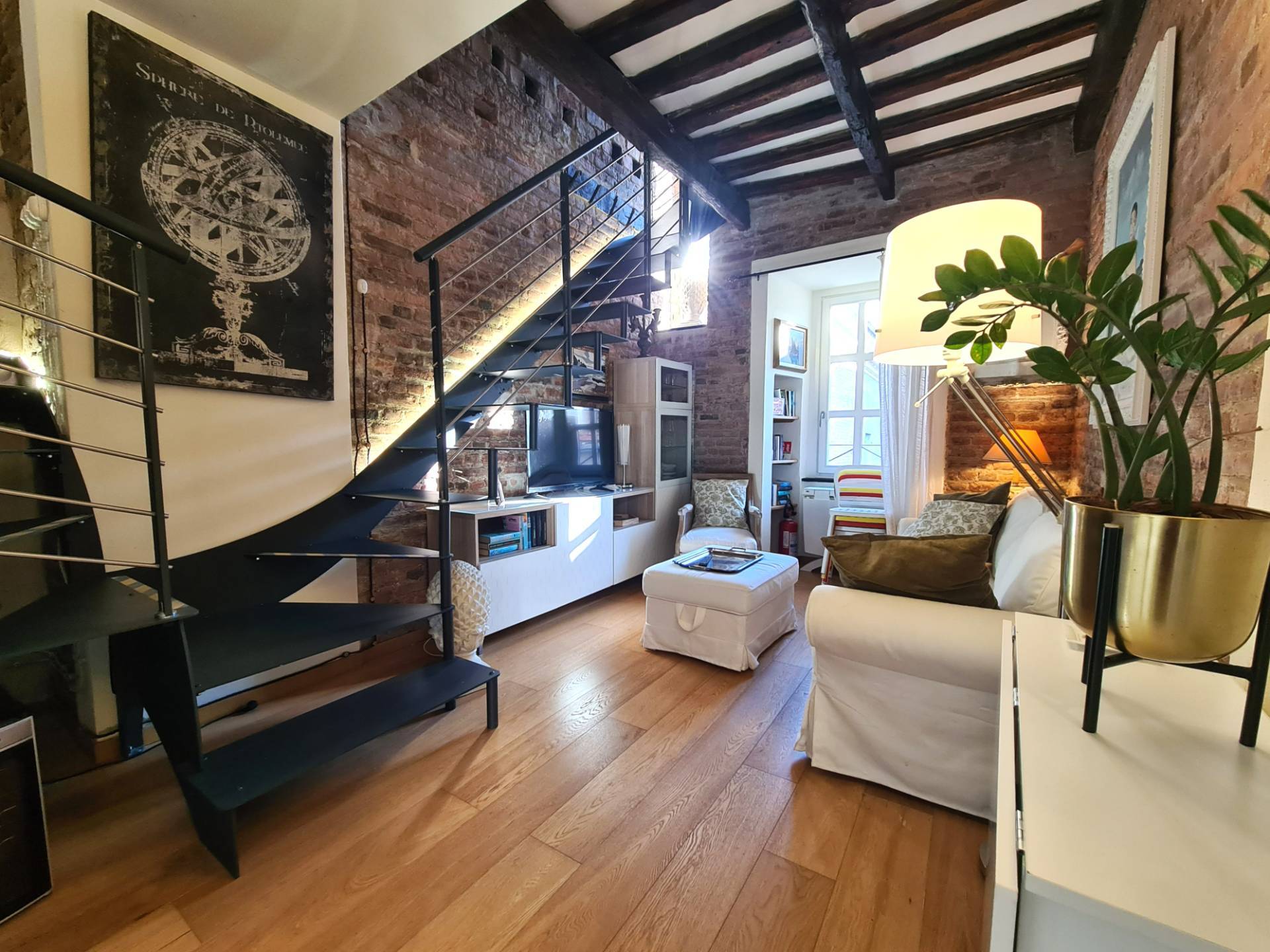 Lappartamento stato oggetto di una completa ristrutturazione, eseguita con grande attenzione ai dettagli e nel rispetto dellanima storica delledificio: le travi in legno a vista, i mattoni e le pareti in pietra donano agli ambienti unatmosfera calda, autentica e senza tempo.