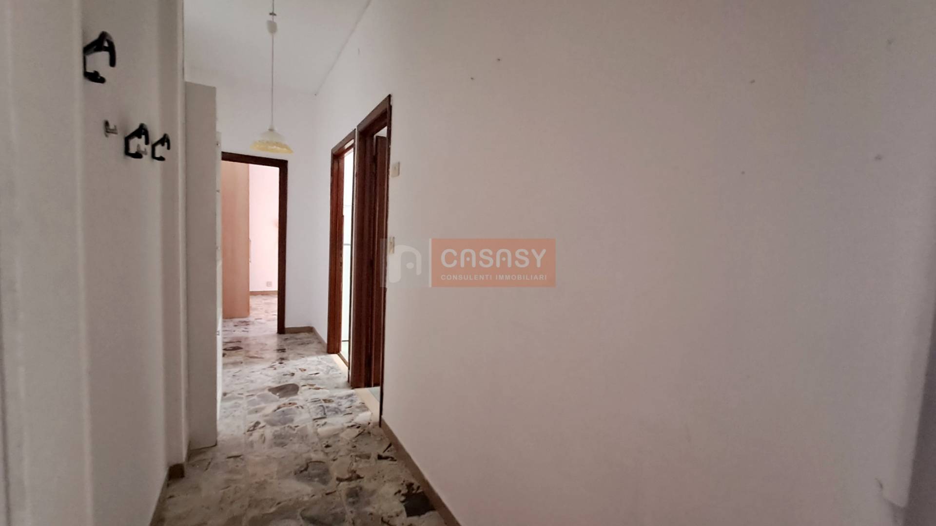 Lingresso, ampio e accogliente, si apre su un corridoio che conduce alle varie stanze della casa: un soggiorno luminoso, una cucina abitabile, una spaziosa camera matrimoniale, un bagno finestrato, un comodo ripostiglio e il terrazzo vivibile, ideale per momenti di relax allaperto.