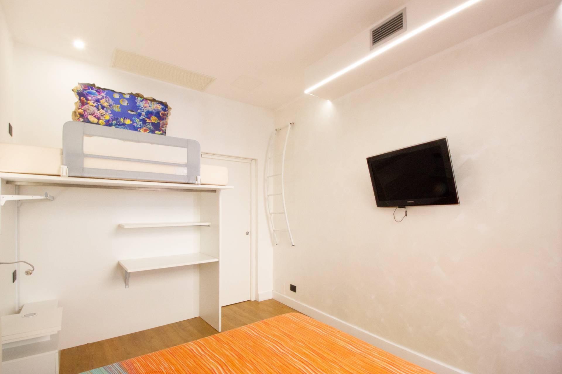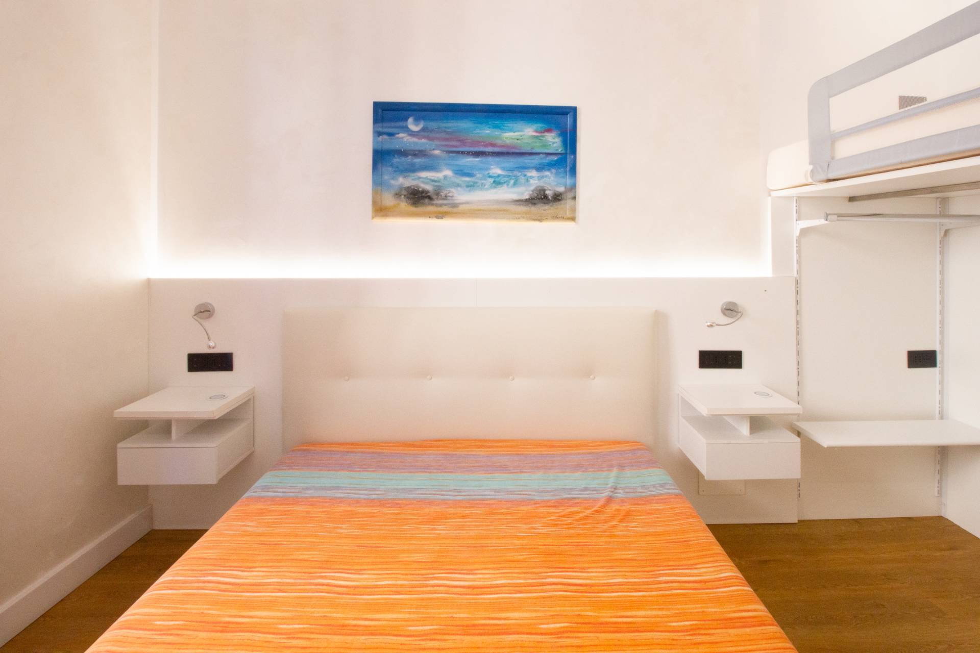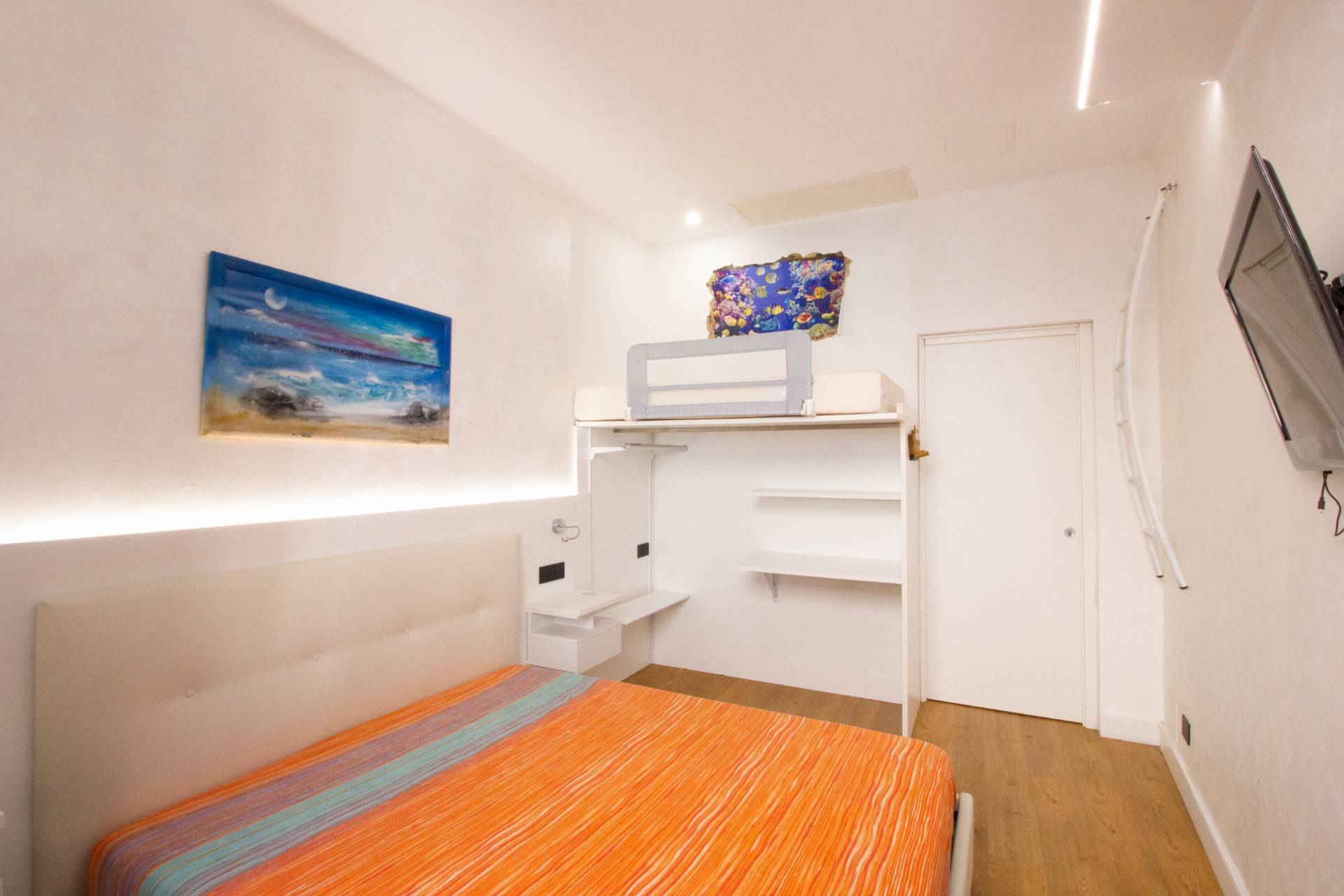 Zona notte La zona notte ben separata e offre uno spazio confortevole e riservato, adatto a letto matrimoniale e armadiature.