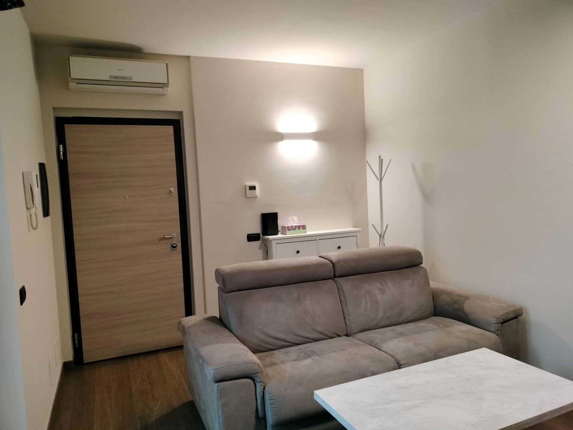 Via Raschio, comodo alle principali arterie della viabilit cittadina per tutte le direzioni alloggio con giardino privato completo di ogni confort ottimo per single, coppie, oppure B&B.... L'immobile di recentissima costruzione risulta essere privo di alcuna barriera architettonica, ed uscendo nel giardino di propriet esclusiva lo rende appetibile anche per le persone con poca motricit.