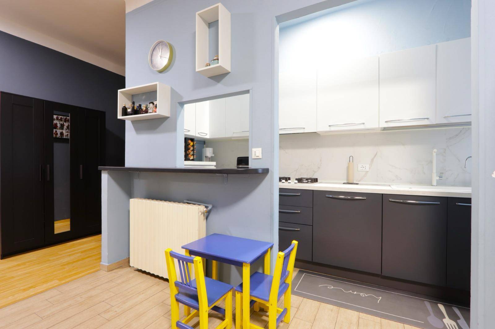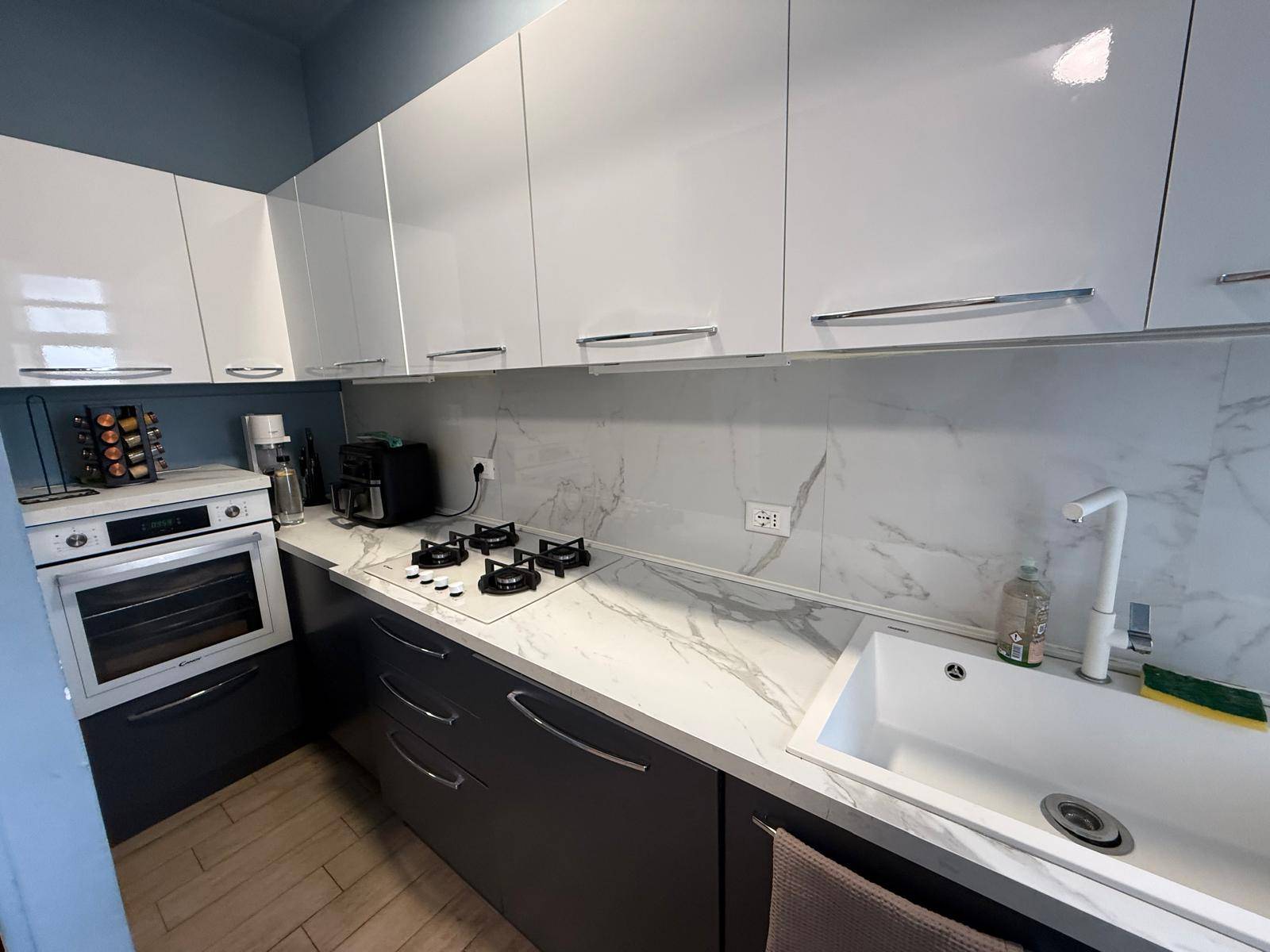 Lingresso si apre su un disimpegno che conduce alla luminosa sala da pranzo con cucinino e al soggiorno separato, ideale come zona relax.