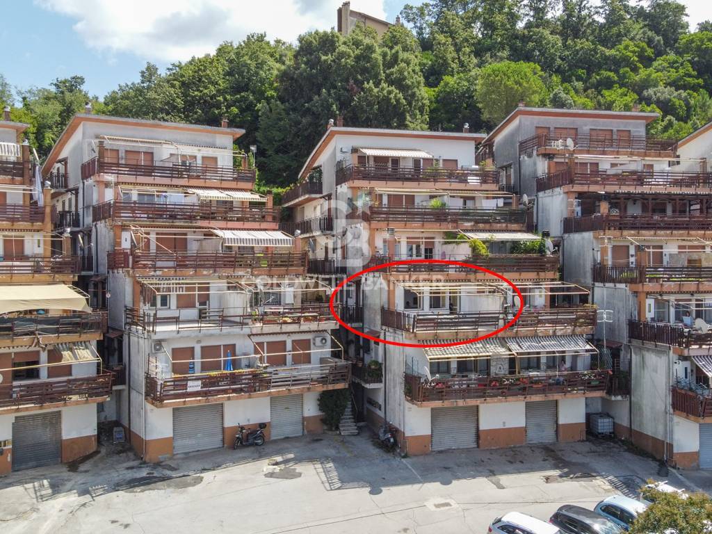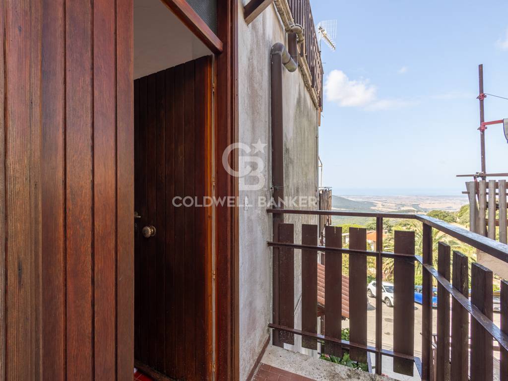 Lappartamento, di 55 mq, si distingue per la presenza di una splendida terrazza di 30 mq, dalla quale si pu godere di una vista panoramica che spazia dal verde circostante fino al mare. Internamente si compone di un soggiorno con camino che si apre direttamente sulla terrazza, un disimpegno, un cucinotto funzionale, una camera matrimoniale e un bagno.