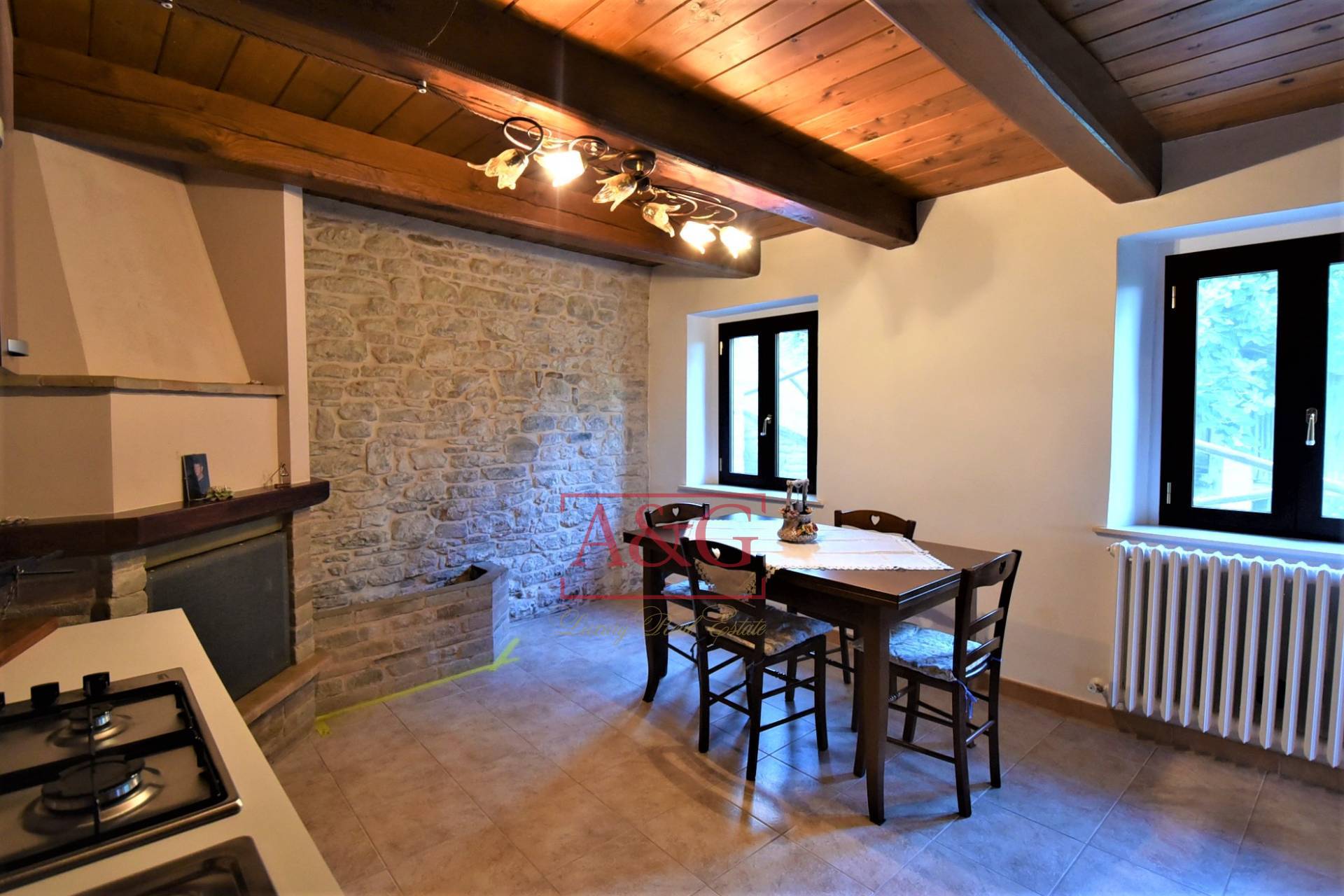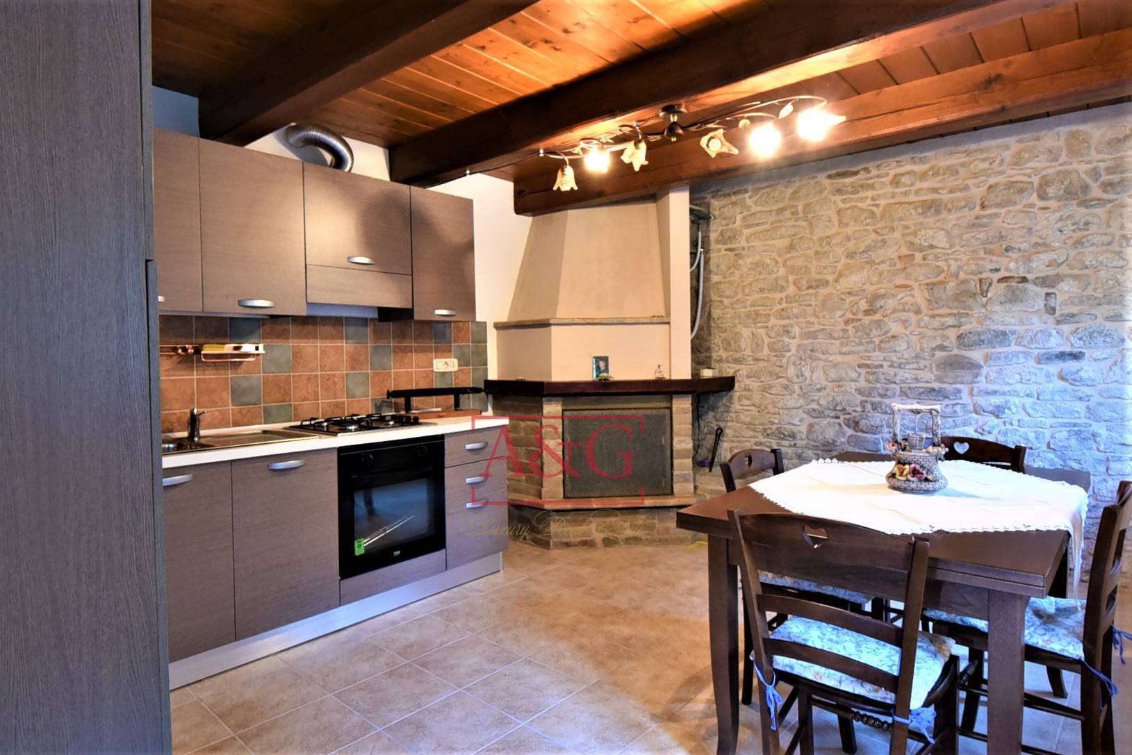 Descrizione dell'immobile L'appartamento situato al primo piano di una casa cielo-terra su tre livelli, recentemente restaurata con grande attenzione alla conservazione dei materiali originali: Muri portanti in pietra a vista Solai con travi in legno Tetto coibentato con copertura in coppi L'abitazione, con ingresso indipendente, si sviluppa su circa 60 mq ed composta da: Cucina abitabile con termo-camino Soggiorno luminoso con vista aperta Camera matrimoniale Bagno con doccia Al piano terra si trova un locale rustico da ultimare, gi predisposto con allacci per cucina, impianto elettrico e scarichi per eventuale bagno.