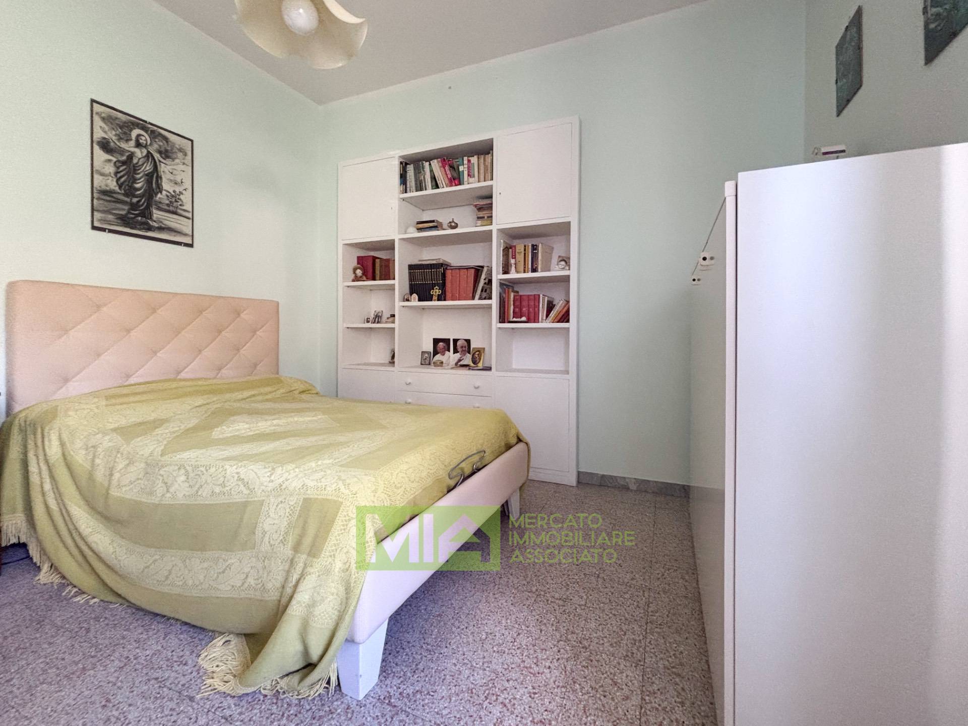 La zona notte composta da due camere matrimoniali luminose e da un bagno funzionale, che conserva le finiture originarie.