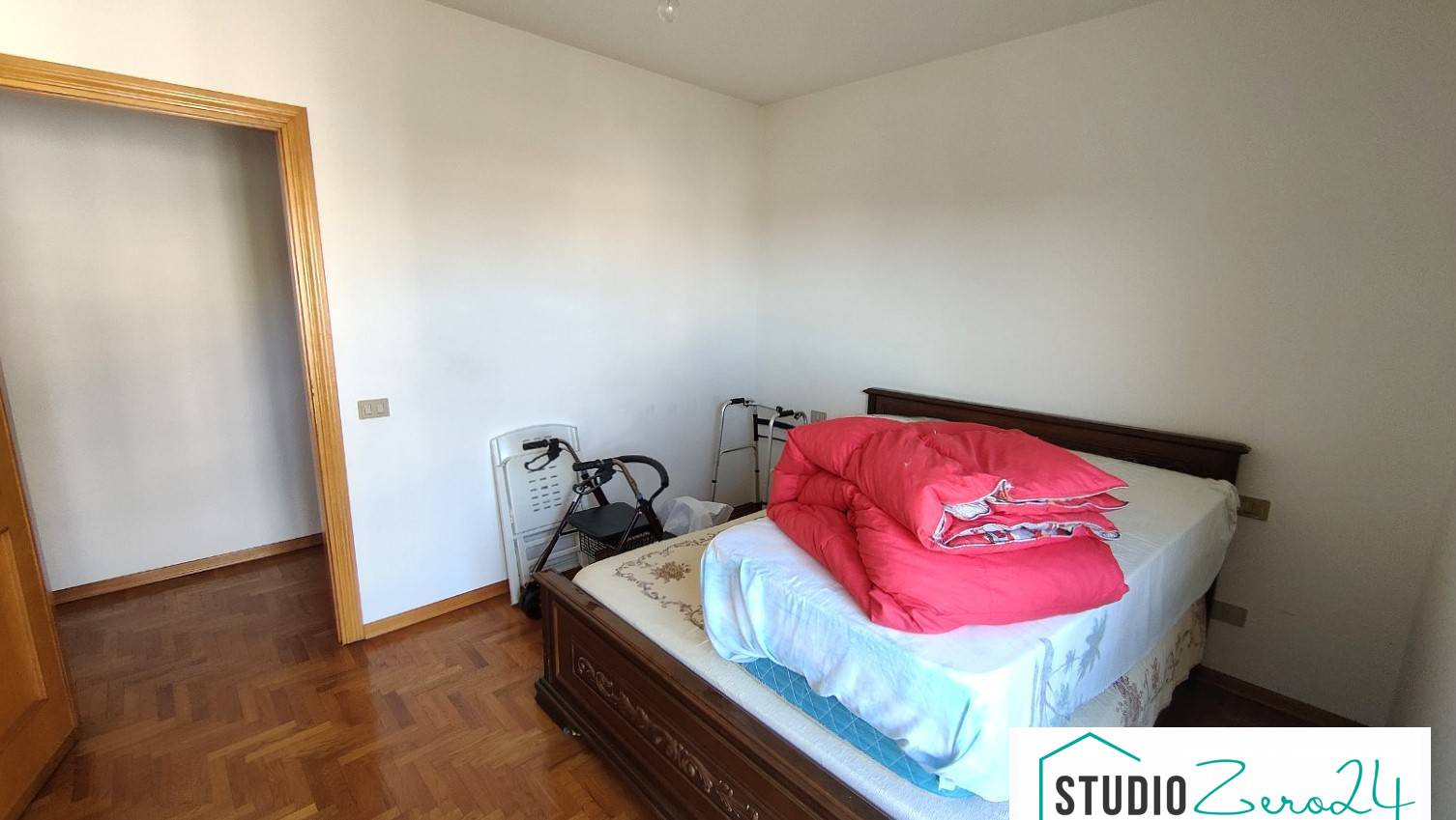 La zona notte pavimentata con elegante parquet, creando un ambiente caldo e riservato.