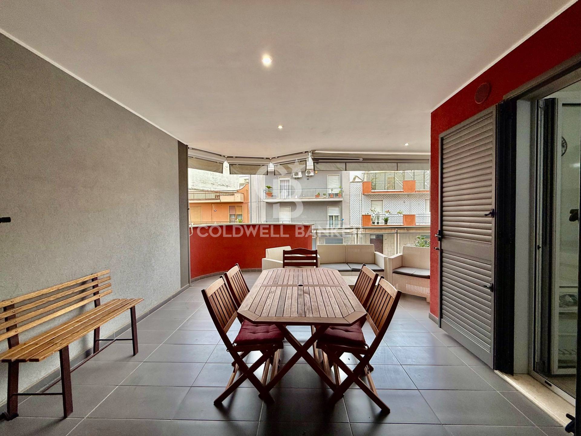 Labitazione si apre su una luminosa e accogliente zona living, composta da soggiornopranzo e cucina , entrambi con accesso diretto a un'ampia veranda con piacevole affaccio su strada.