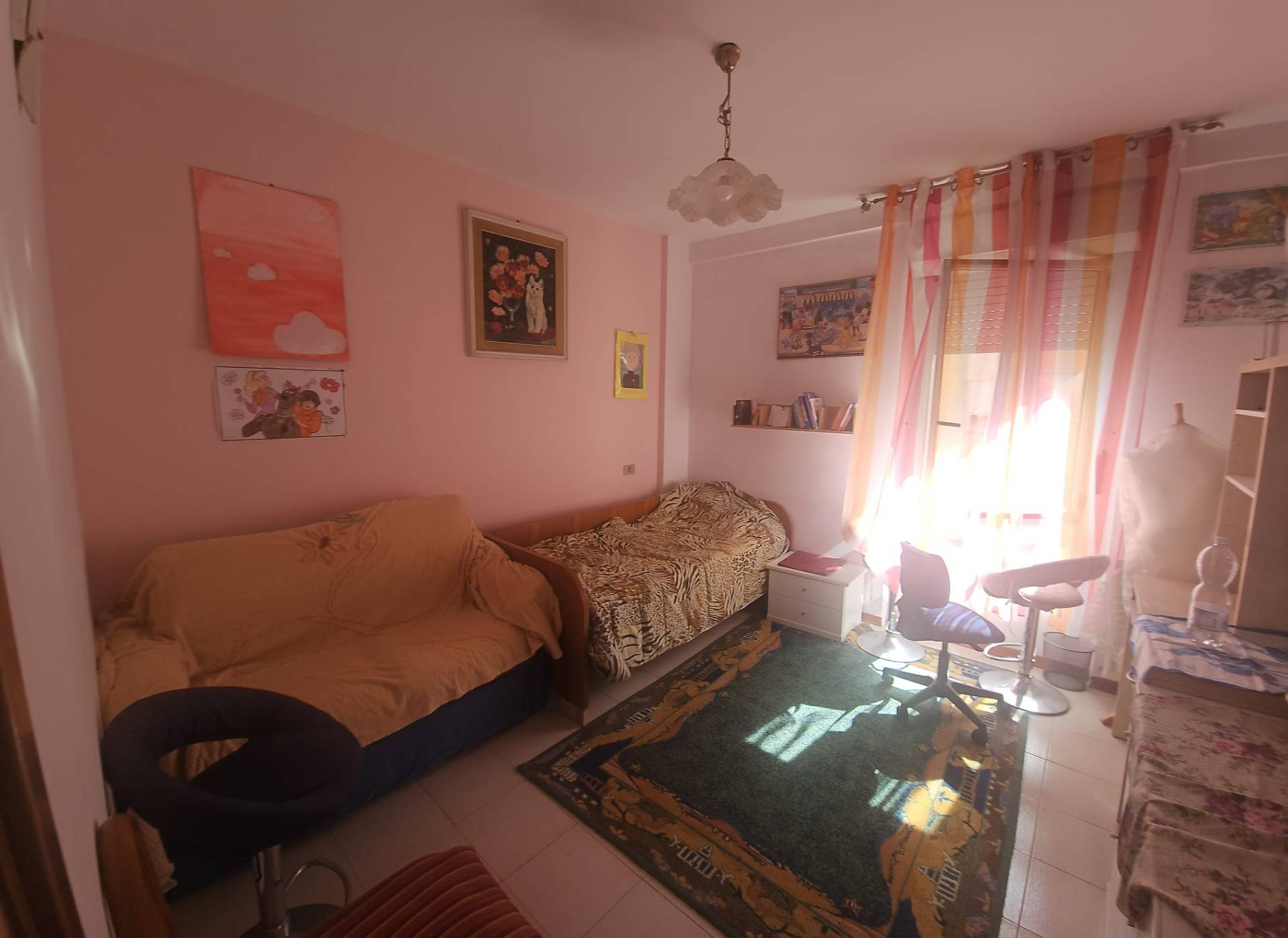 L'immobile composto da salone con accesso al terrazzo, cucina, camera matrimoniale con porta finestra sul balcone e servizio con vasca, camera da letto, secondo servizio finestrato, terrazzo abitabile e posto auto scoperto.