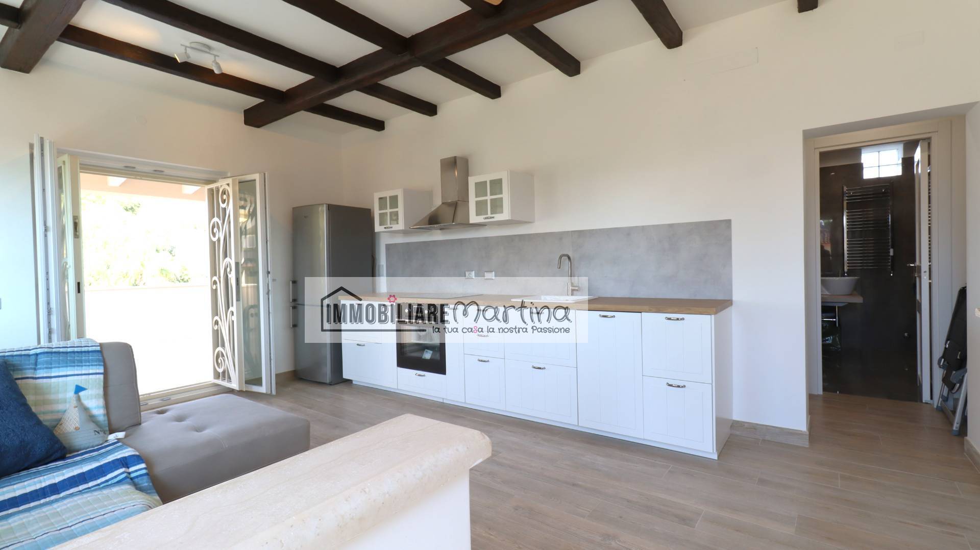 il soggiorno spazioso con cucina a vista arricchito da unampia porta finestra che illumina lambiente e permette laccesso al terrazzo spazioso, in cui poter trascorrere, nella bella stagione, piacevoli momenti in compagnia o consumare gustosi pasti.