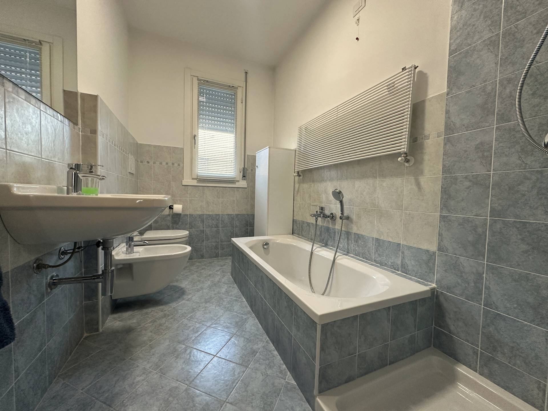 Il disimpegno conduce alla zona notte, dove troviamo un bagno completo, dotato sia di vasca che di doccia, soluzione pratica e confortevole, e una camera matrimoniale di generose dimensioni, anchessa servita da balcone, perfetta per garantire privacy e benessere abitativo.