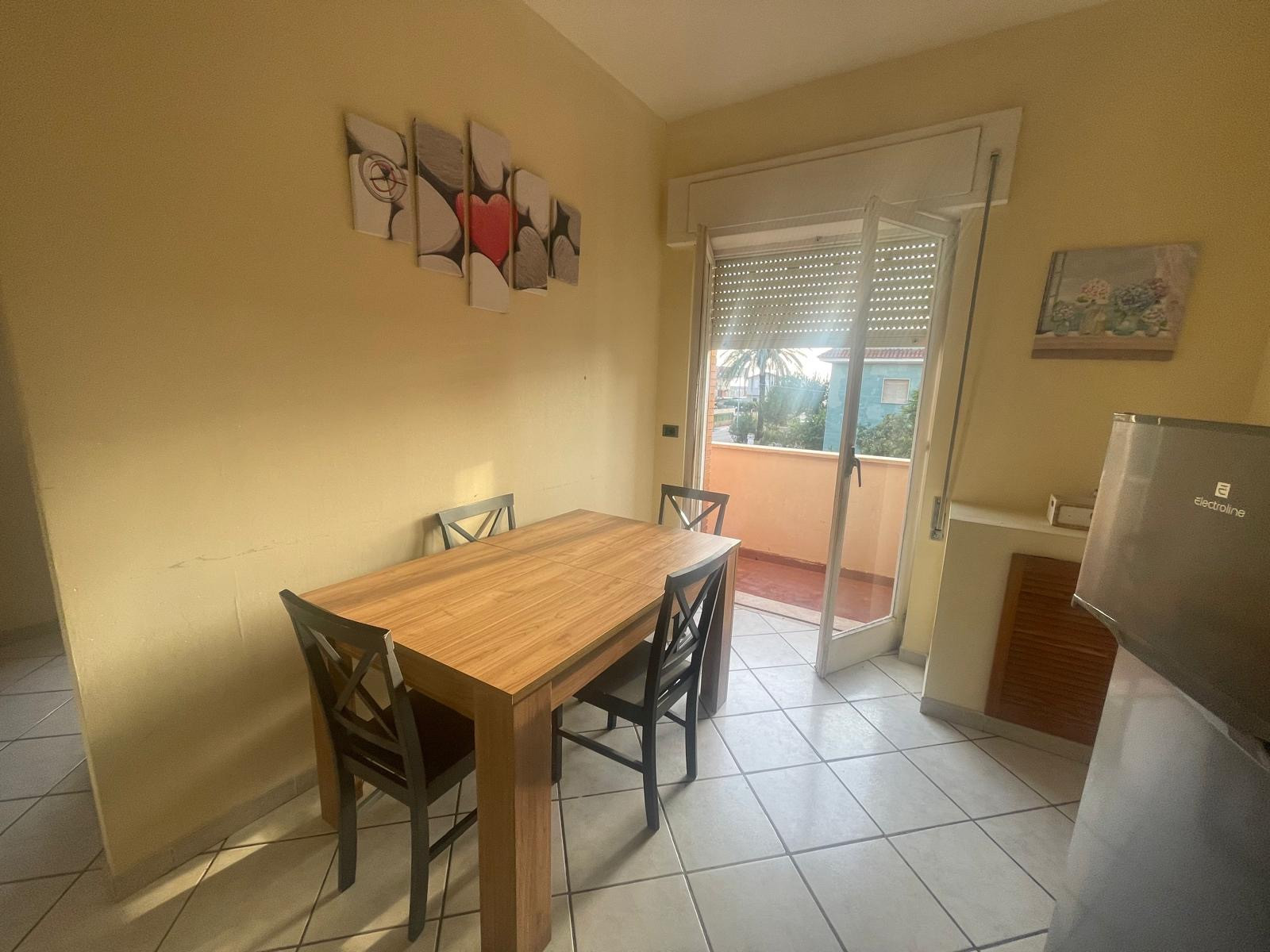 Marina di Ardea, a pochi metri dal mare, appartamento posto al primo piano, composto da luminoso salone con angolo cottura e porta finestra che da accesso ad un comodo balcone vista mare, cameretta, camera matrimoniale anch'essa con uscita al balcone con vista mare e servizio finestrato con vasca.