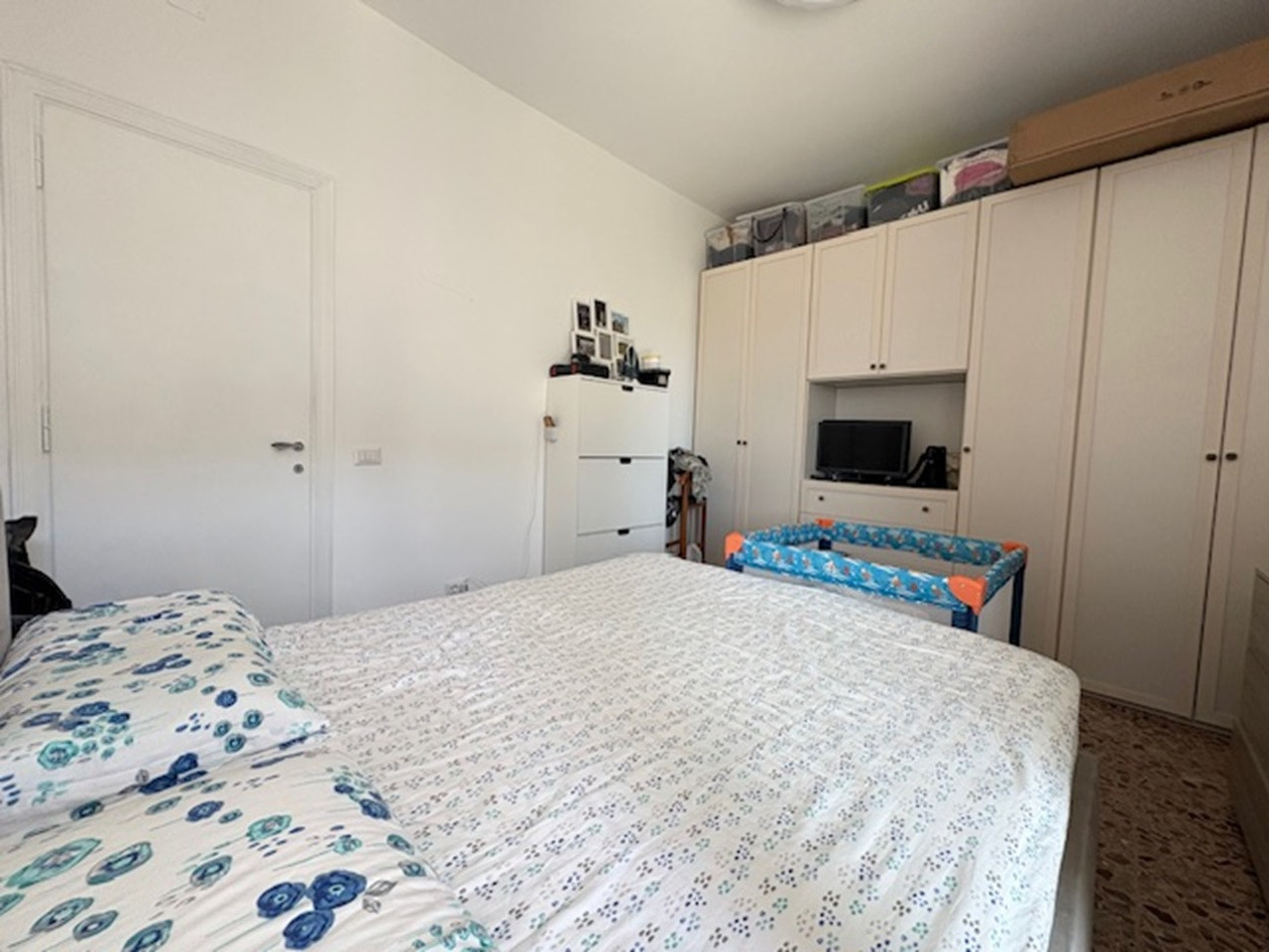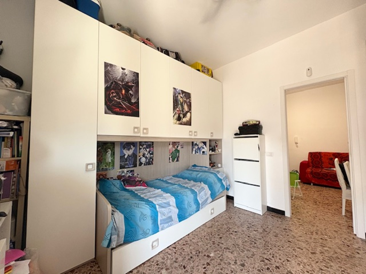 L'immobile composto da salone, camera e cameretta con uscita al terrazzo vista mare, cucina abitabile con uscita al balcone e servizio finestrato.