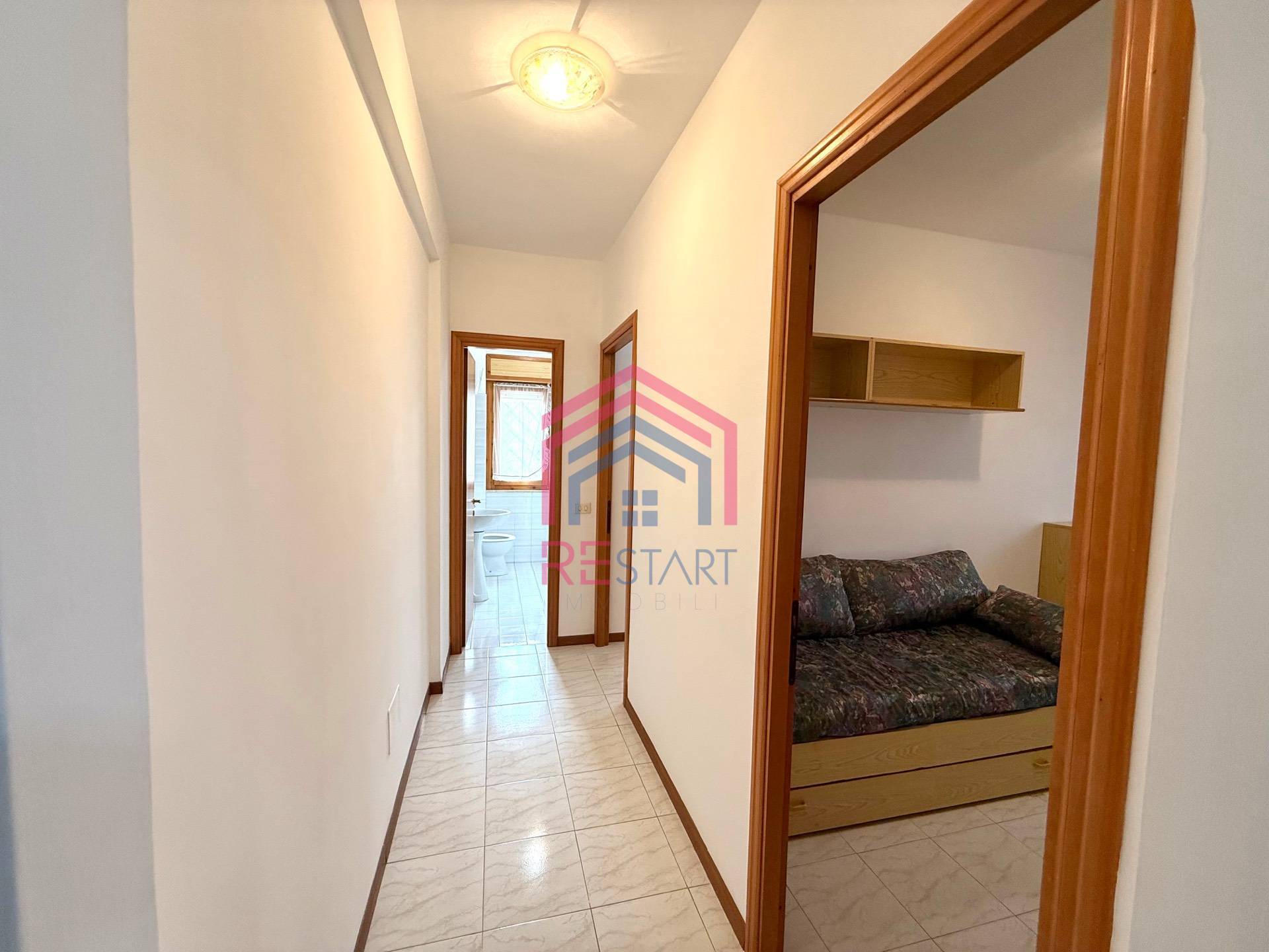 L'immobile composto da 3 locali, entrando ci accoglie una luminosa sala vista mare con accesso sull'ampio e comodo balcone perimetrale, cucina a vista, corridoio, cameretta, camera matrimoniale con accesso sul balcone e bagno con box doccia.