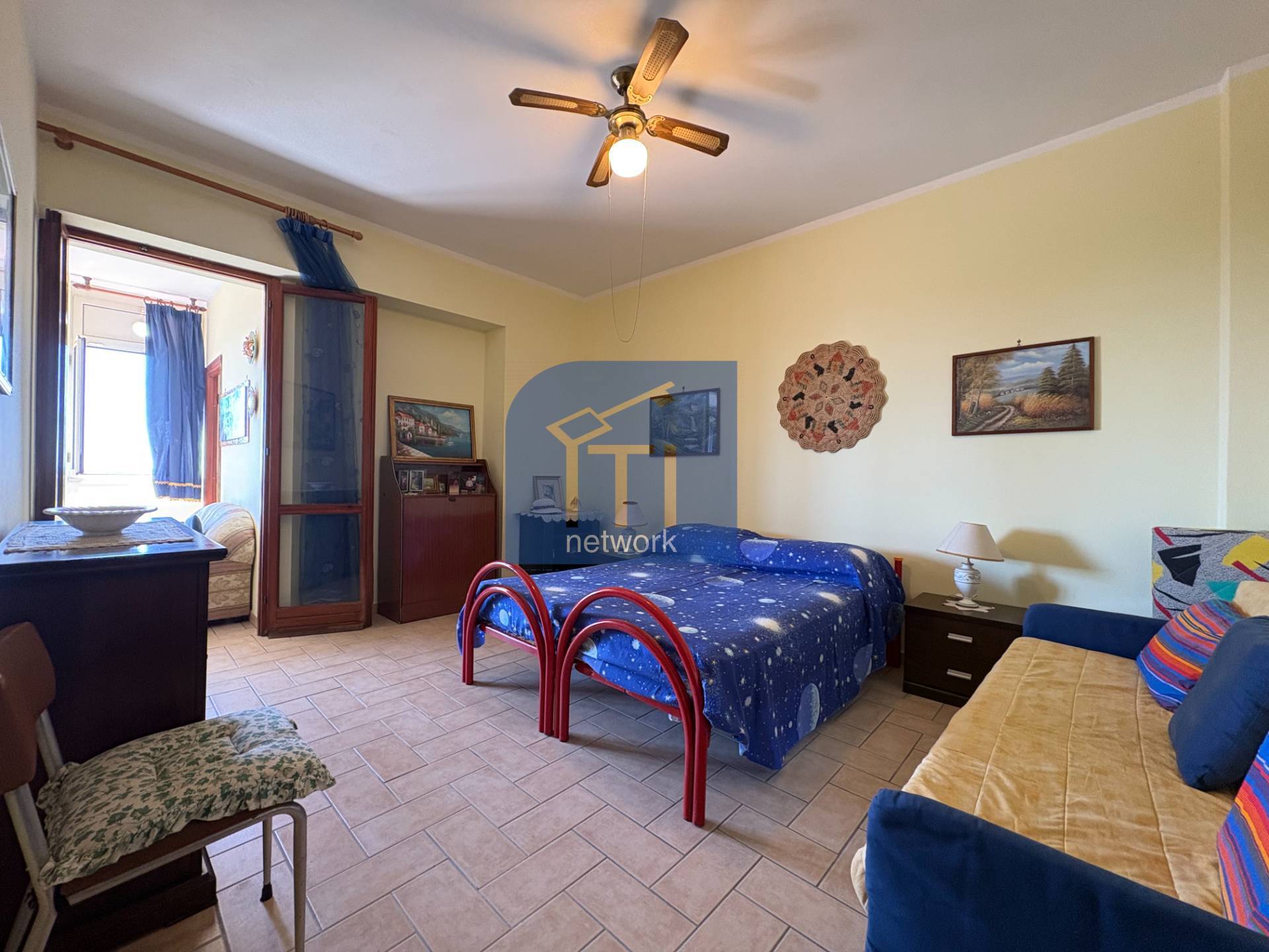 L'appartamento composto da salone luminoso con vista mare, angolo cottura, due camere da letto di cui una con finestra vista mare e servizio.
