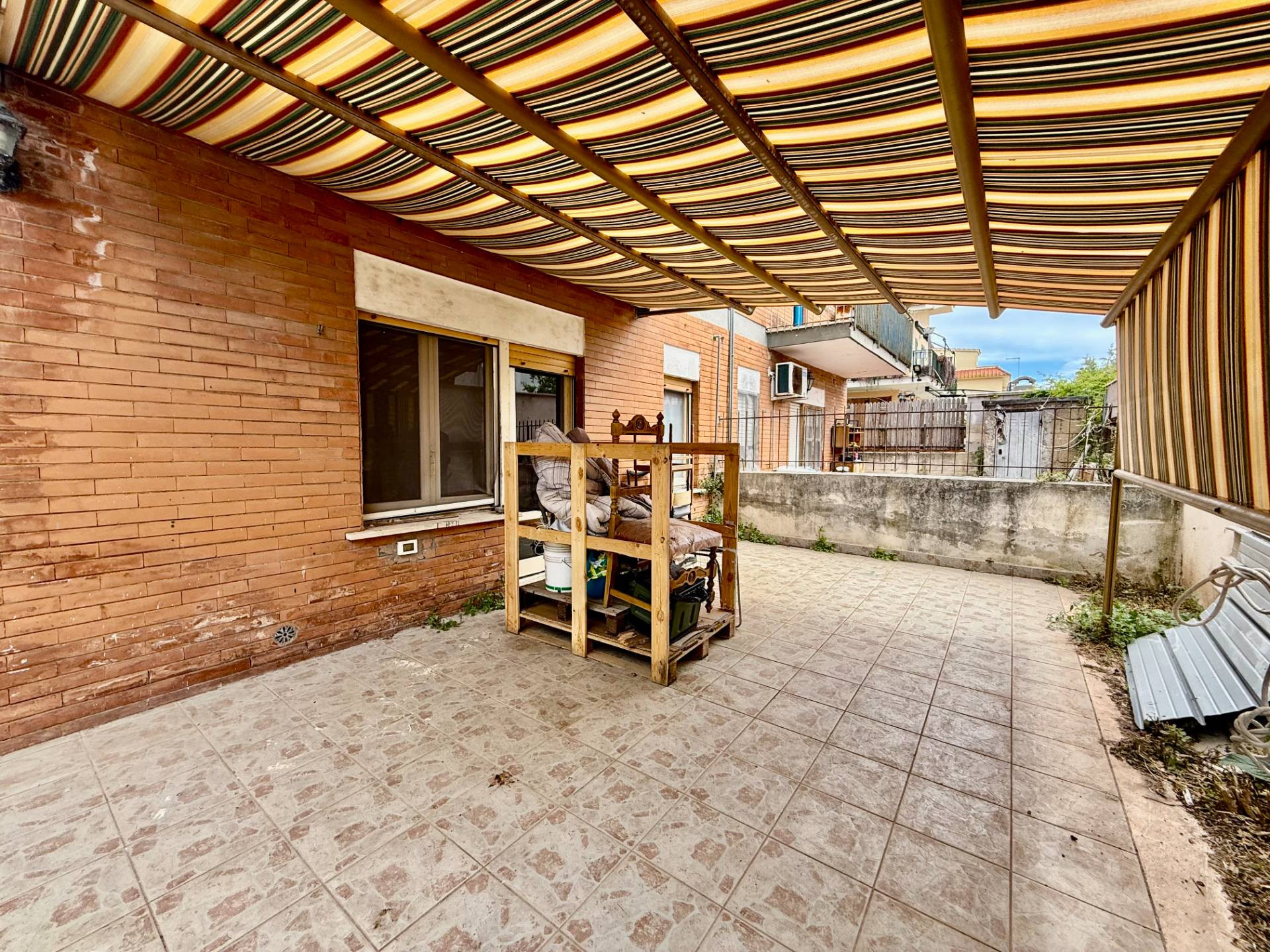 Appartamento, trilocale ad Ardea, localit Tor San Lorenzo mare, piano terra con ampio giardino, a pochi passi dal mare, composto da salone con angolo cottura con accesso al giardino, camera da letto con accesso sempre al giardino, cameretta con affaccio sul giardino, servizio con finestra, ampio giardino.