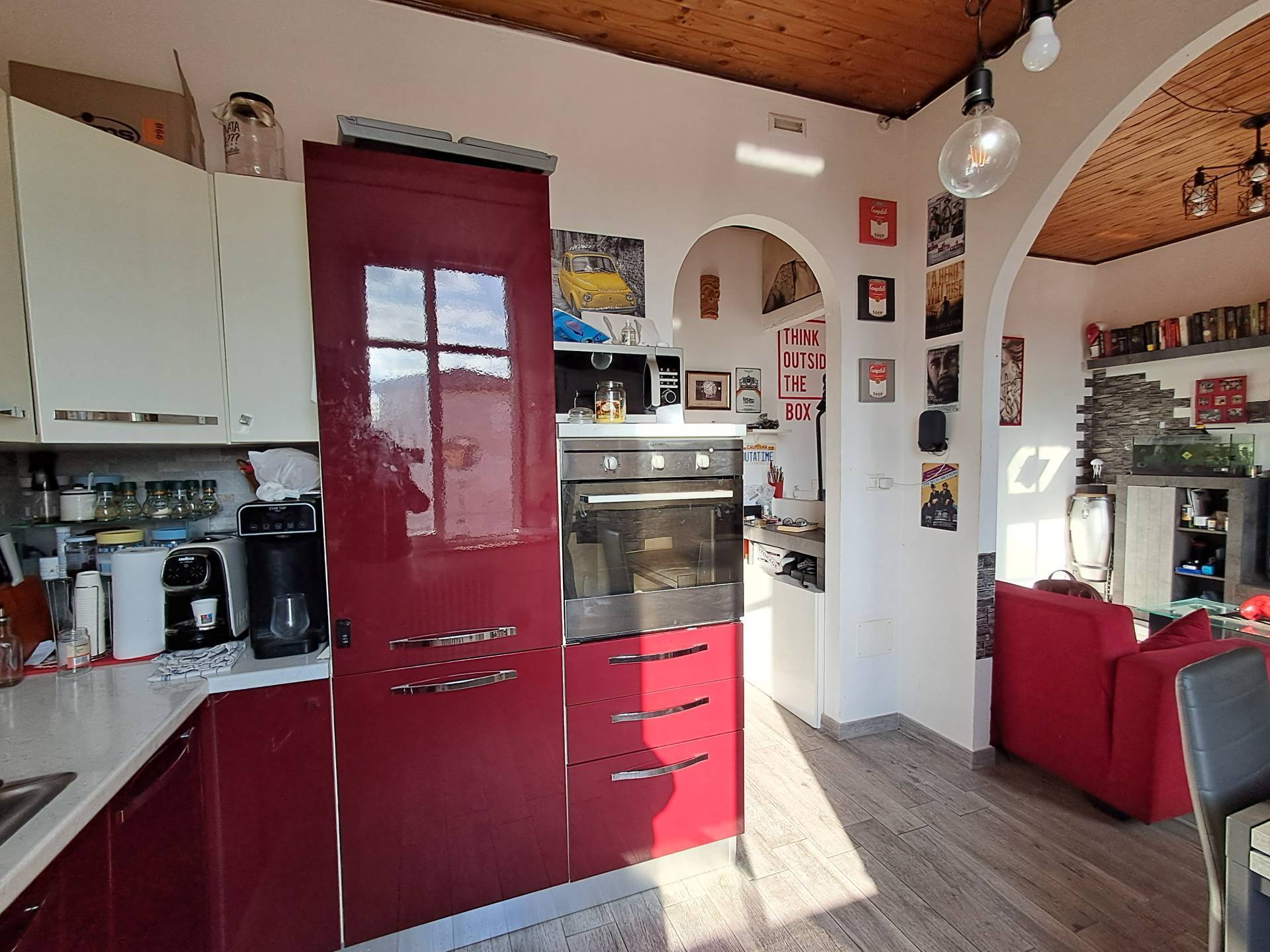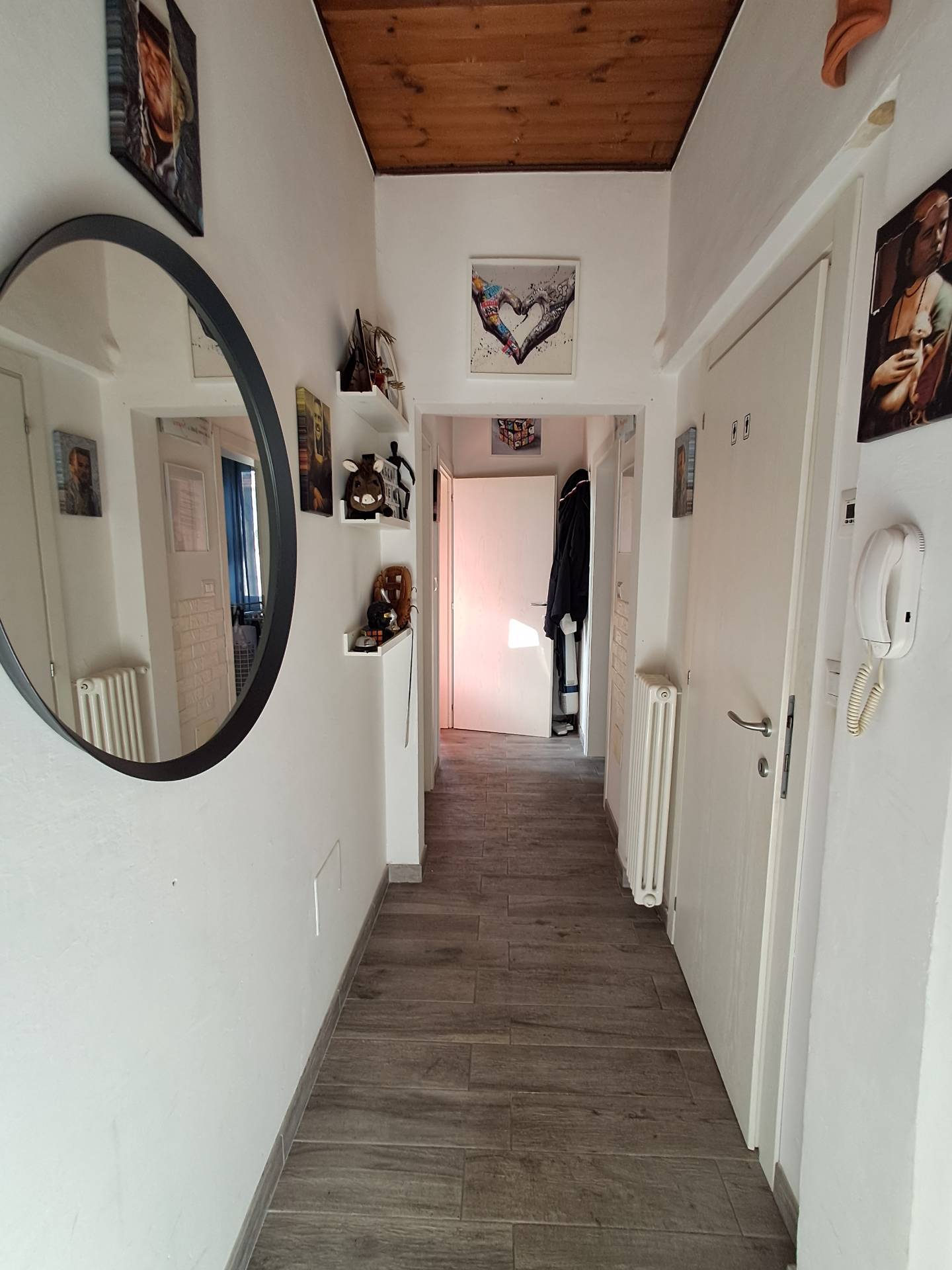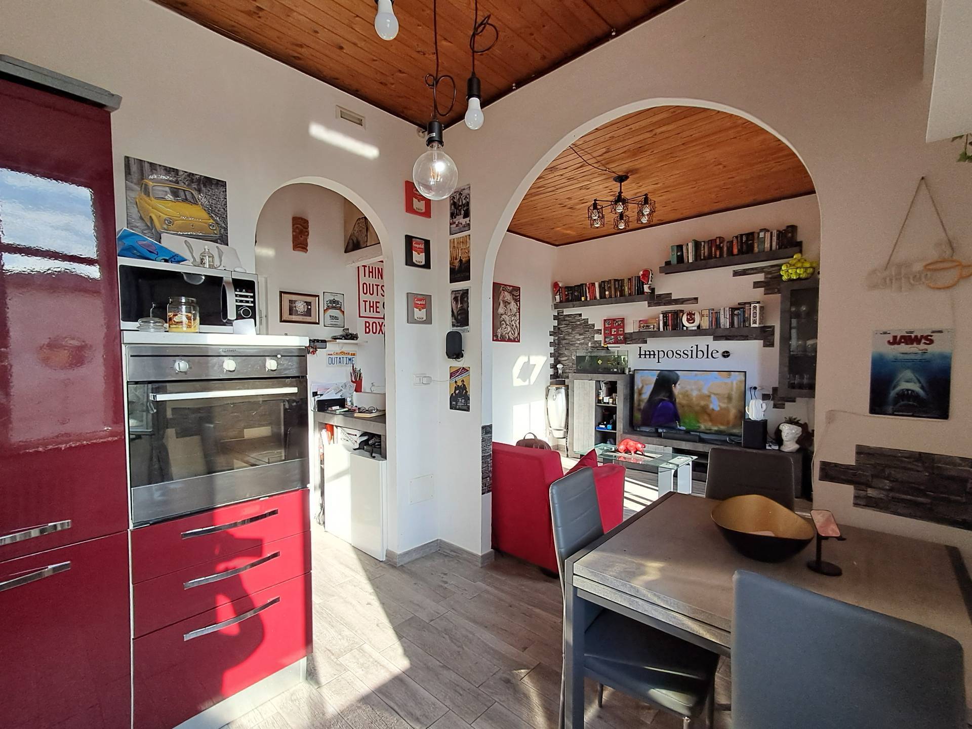 L'immobile cos composto: ingresso nel disimpegno, soggiorno con cucina a vista, due camere matrimoniali, ripostriglio eun ***.*******.** ristrutturato anche negli impianti elettrici e termo-idraulici subito disponibile e abitabile, i pavimenti sono in gres porcellanato, infissi in legno con doppio vetro, termo autonomo con radiatori in ghisa, portone blindato, citofono.