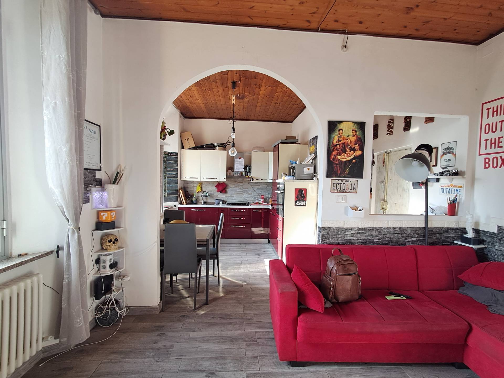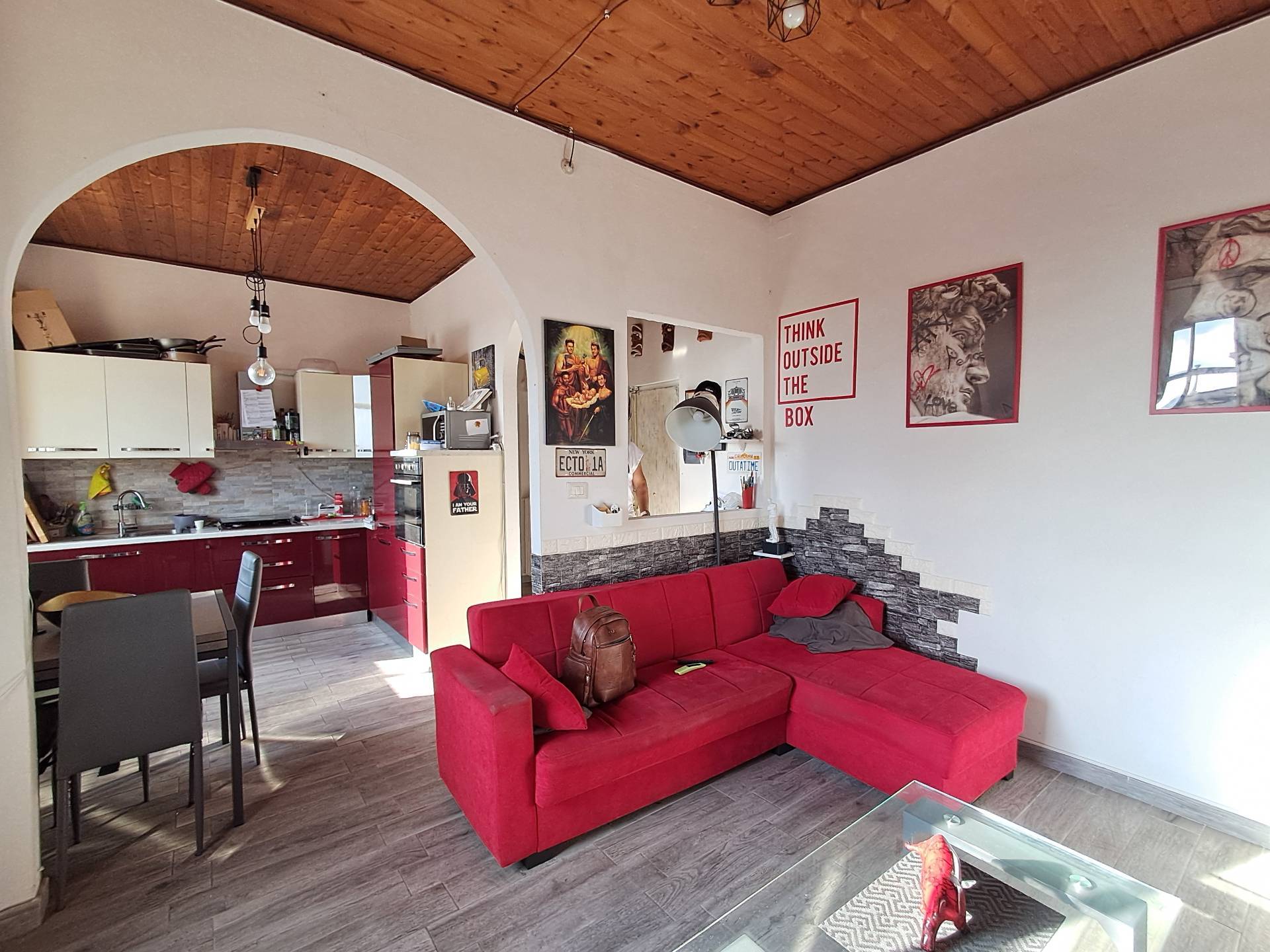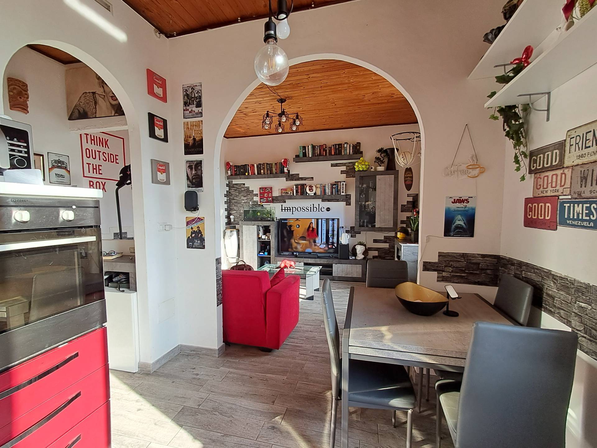 L'immobile cos composto: ingresso nel disimpegno, soggiorno con cucina a vista, due camere matrimoniali, ripostriglio eun ***.*******.** ristrutturato anche negli impianti elettrici e termo-idraulici subito disponibile e abitabile, i pavimenti sono in gres porcellanato, infissi in legno con doppio vetro, termo autonomo con radiatori in ghisa, portone blindato, citofono.