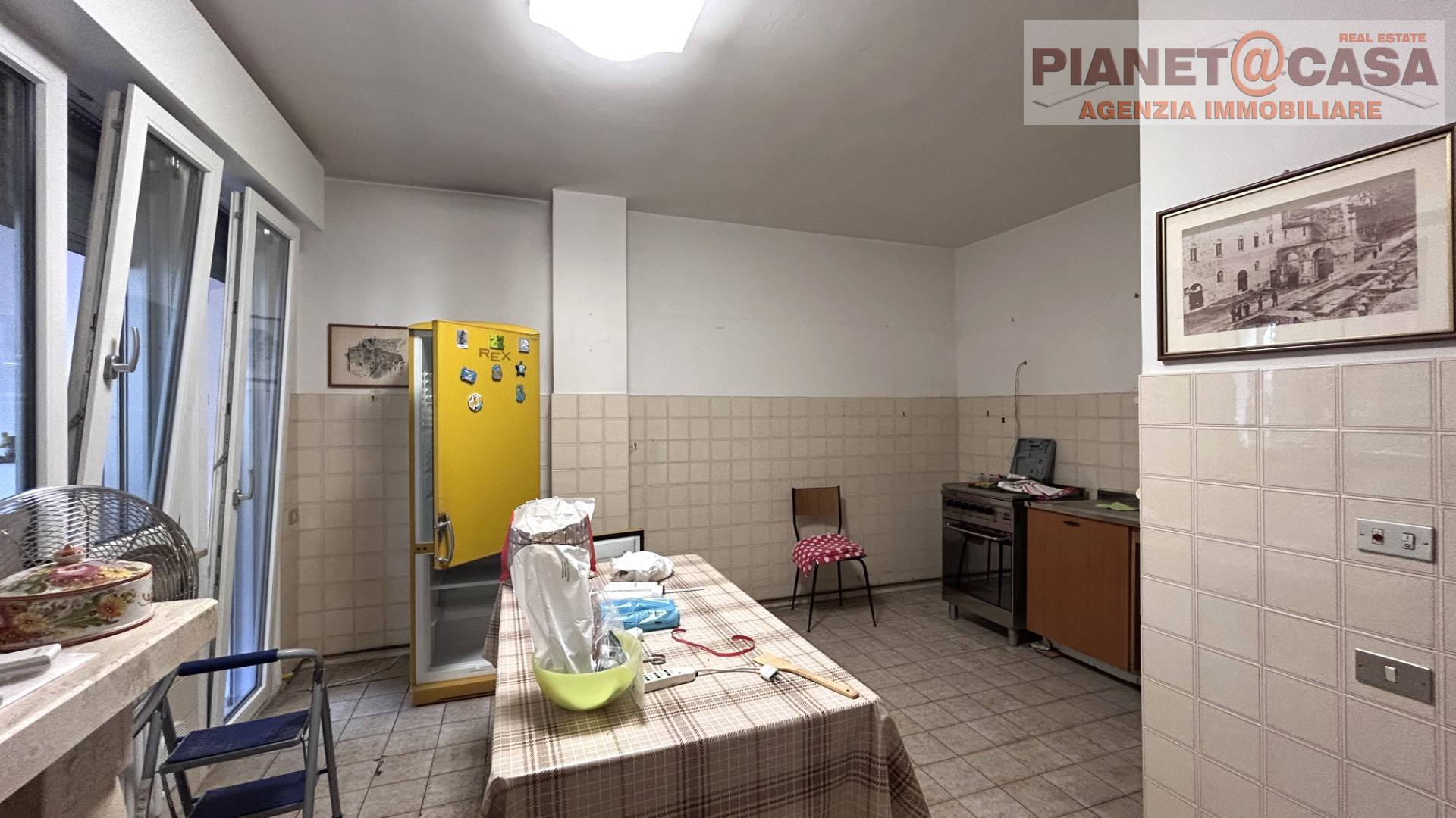 L'immobile composto da ingresso, ampio soggiorno, grande cucina abitabile con bellissimo camino rivestito in travertino, tre camere di cui due matrimoniali e una cameretta molto spaziosa, un bagno finestrato con vasca, un secondo bagno con doccia, comodo ripostiglio ed un balcone a livello.