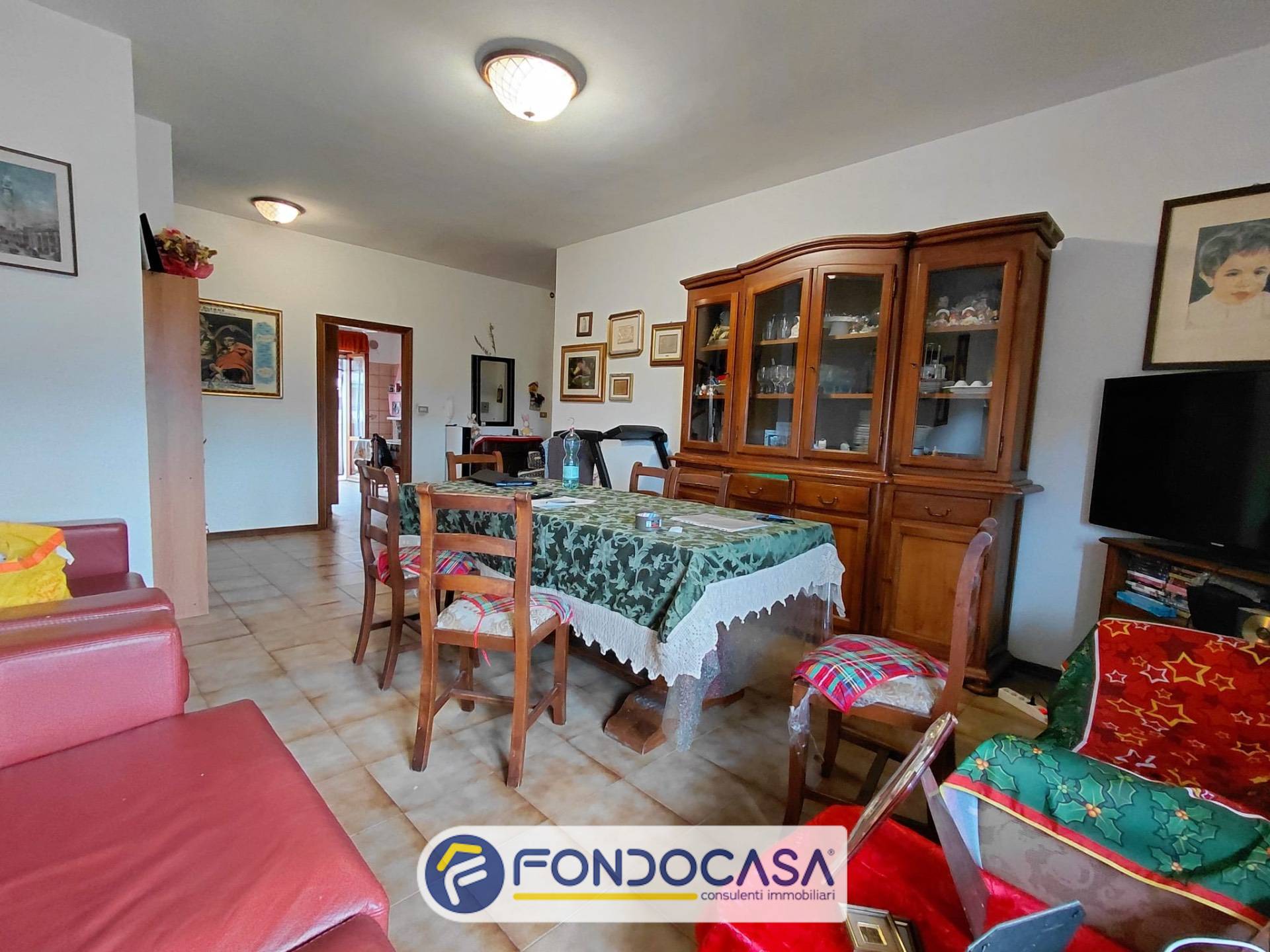 L'appartamento sviluppa su circa 101 mq. oltre tre balconi di circa 6 mq., garage di circa 18 mq. e locale ad uso cantina di circa 10 mq. per un totale commerciale di circa 117 mq. ed composto da ingresso su ampio soggiorno, cucina con camino, tre camere, bagno tre balconi, garage e fondaco.