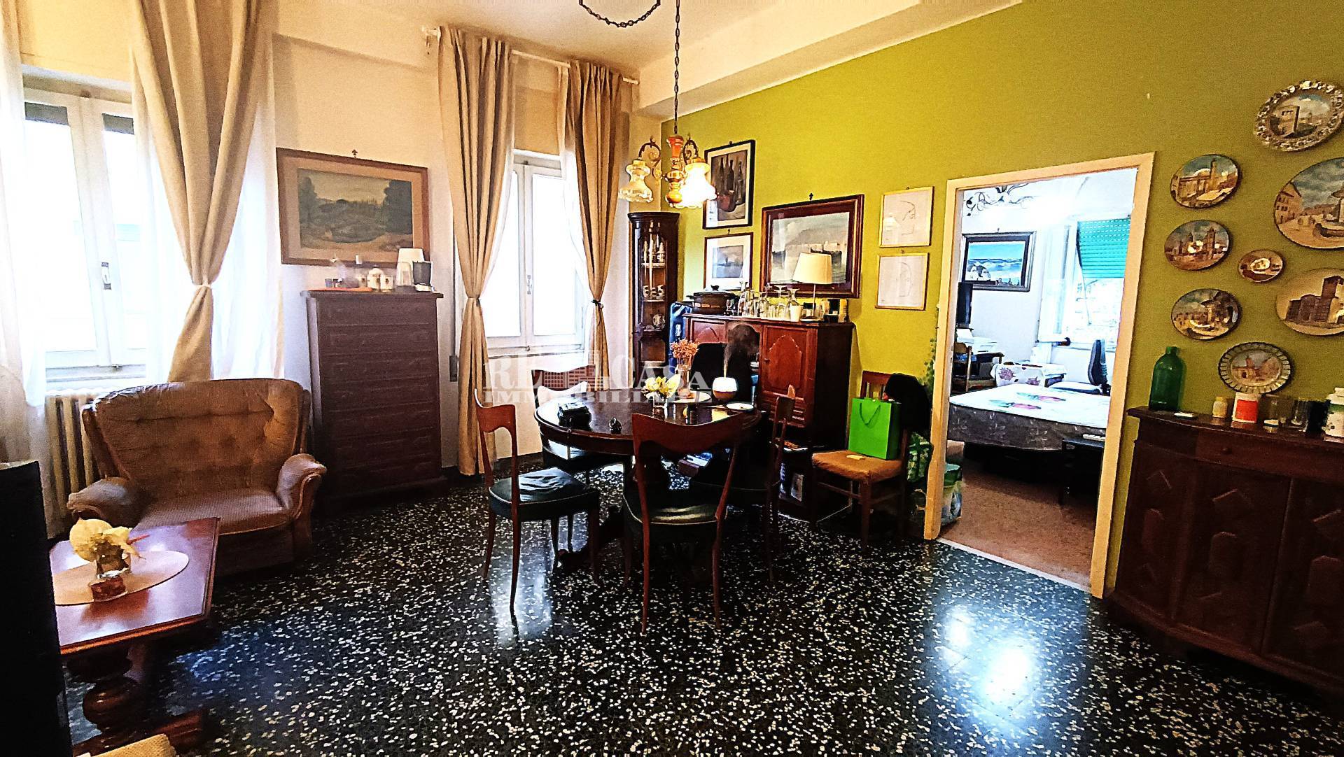 Spazioso appartamento signorile sito al secondo piano di una palazzina servita da ascensore e cos composta: ingresso/disimpegno sulla zona giorno, ampio soggiorno, cucinotto con accesso su di un balcone perimetrale che espone su due lati di circa 6 mq; tre camere da letto matrimoniali di cui una con accesso sul balcone, bagno finestrato con vasca, completa la propriet un fondaco al piano seminterrato ideale per il ricovero di bici o come piccolo rimessaggio; L'immobile si presente in discreto stato interno: impianto termico con radiatori in ghisa con caldaia esterna, impiantistica a norma secondo l'epoca costruttiva, pavimenti in graniglia e marmo dell'epoca costruttiva; Soluzione ideale come immobile a reddito (attualmente l'unit a reddito con regolare contratto transitorio) , o per una residenza per un nucleo famigliare numeroso.
