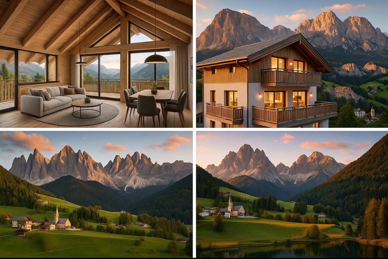 L'abbraccio delle Dolomiti entra dalle finestre come un ospite gentile: giochi di luce, silenzi morbidi, l'eco del vento che scivola tra i larici.