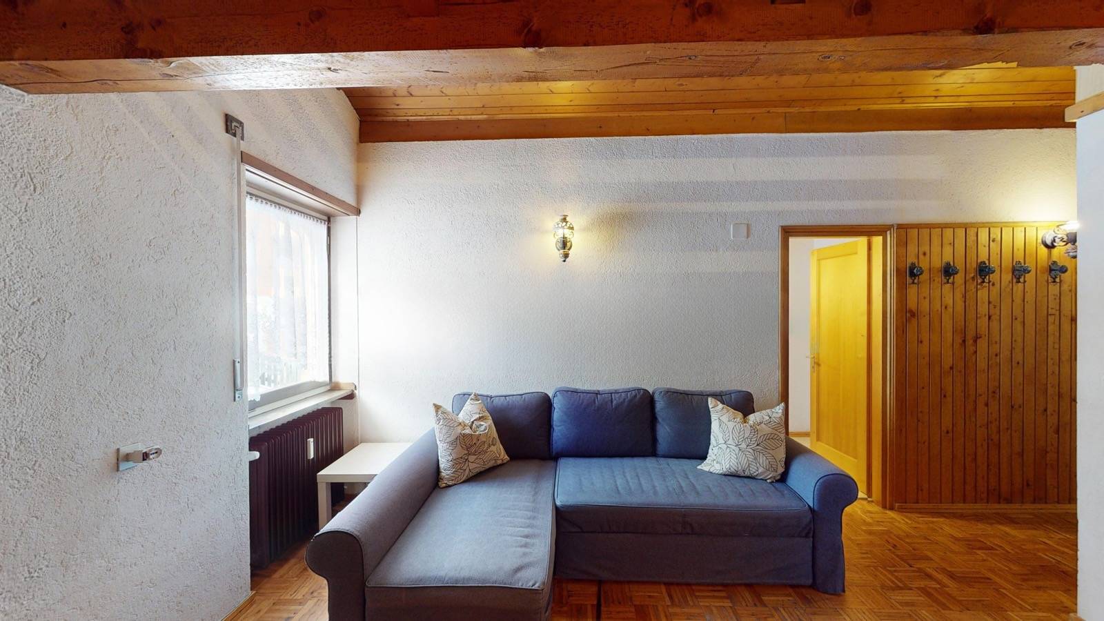 Una minickucina compatta e organizzata rende semplice ogni momento conviviale, mentre il soggiorno, dominato dal legno e della luce , invita a tisane fumanti dopo una camminata o a risate soffuse nelle sere d'inverno.