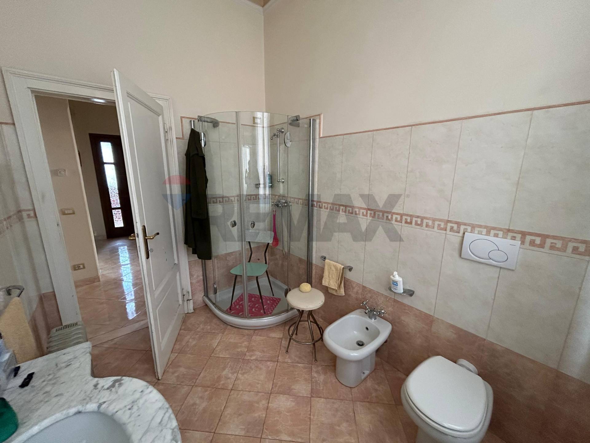 Il bagno, spazioso e ben organizzato, dispone di un pratico box doccia.