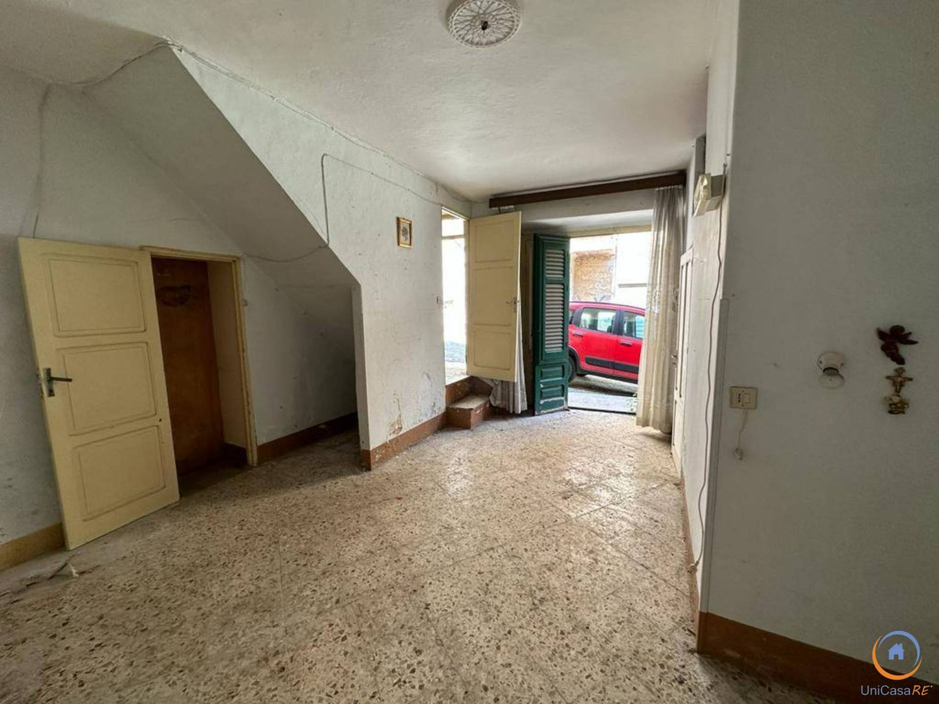 La casa, seppur necessiti di lavori di ammodernamento, luminosa, ha diverse finestre e due balconi sul prospetto al primo e al secondo piano.