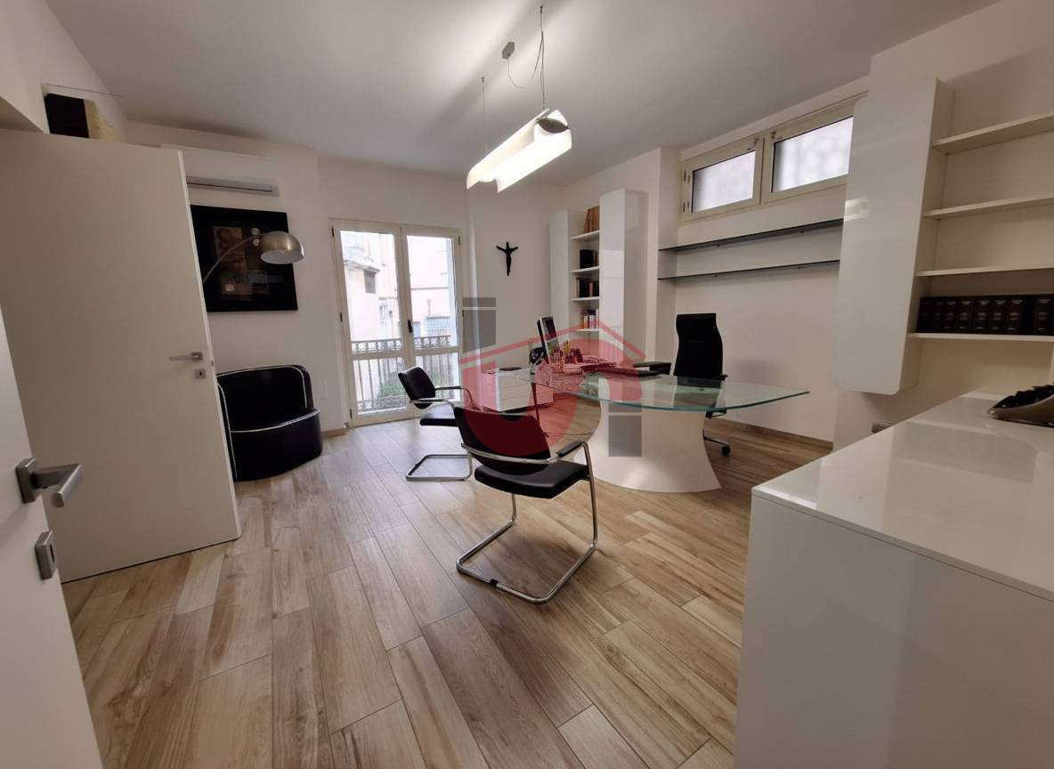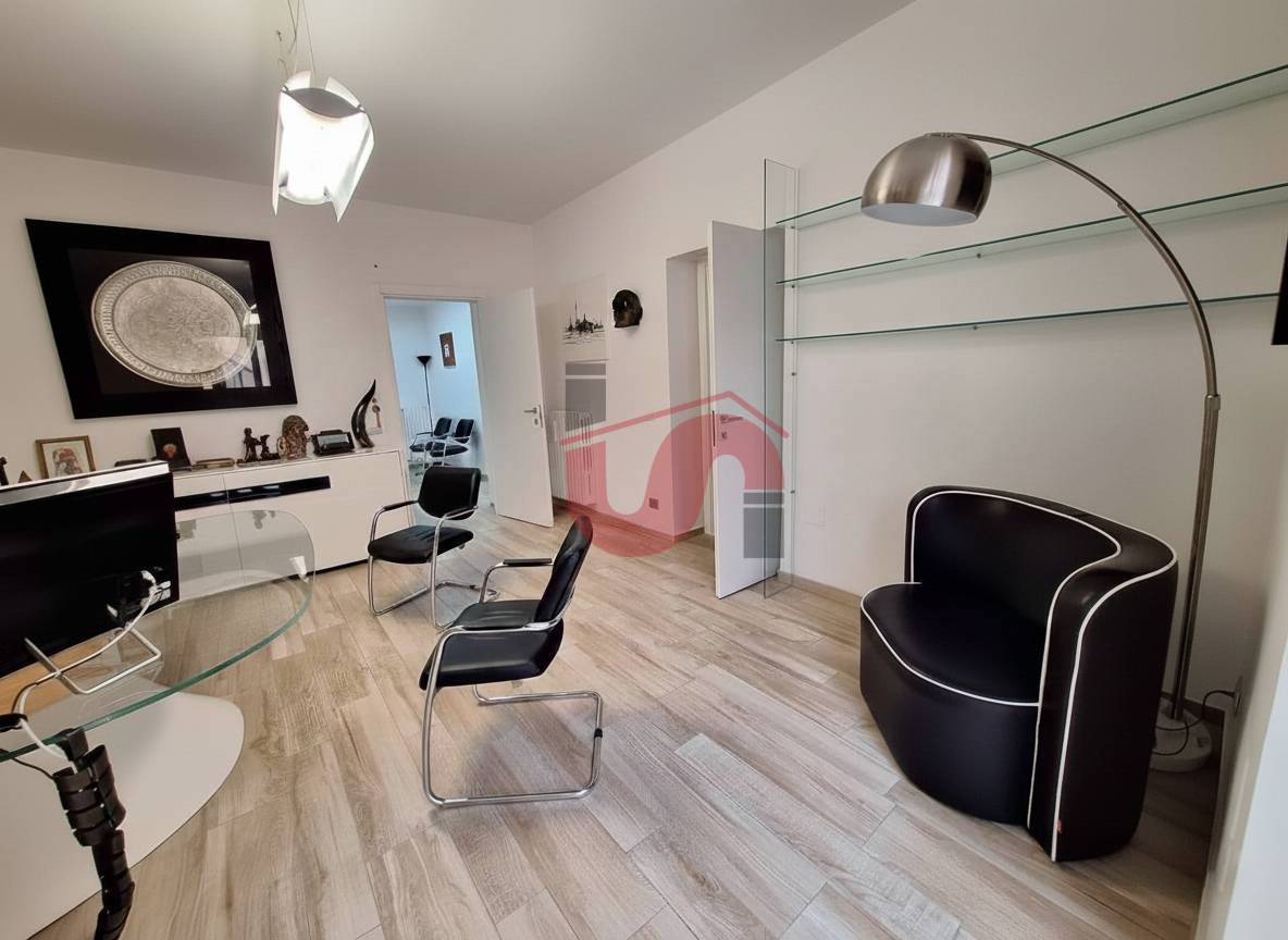 L'appartamento allo stato utilizzato come studio e in questa configurazione si compone di ingresso, 5 vani utili dei quali i due principali dotati di ampie vetrate e affaccio sulla corte interna, servizio e disimpegno.