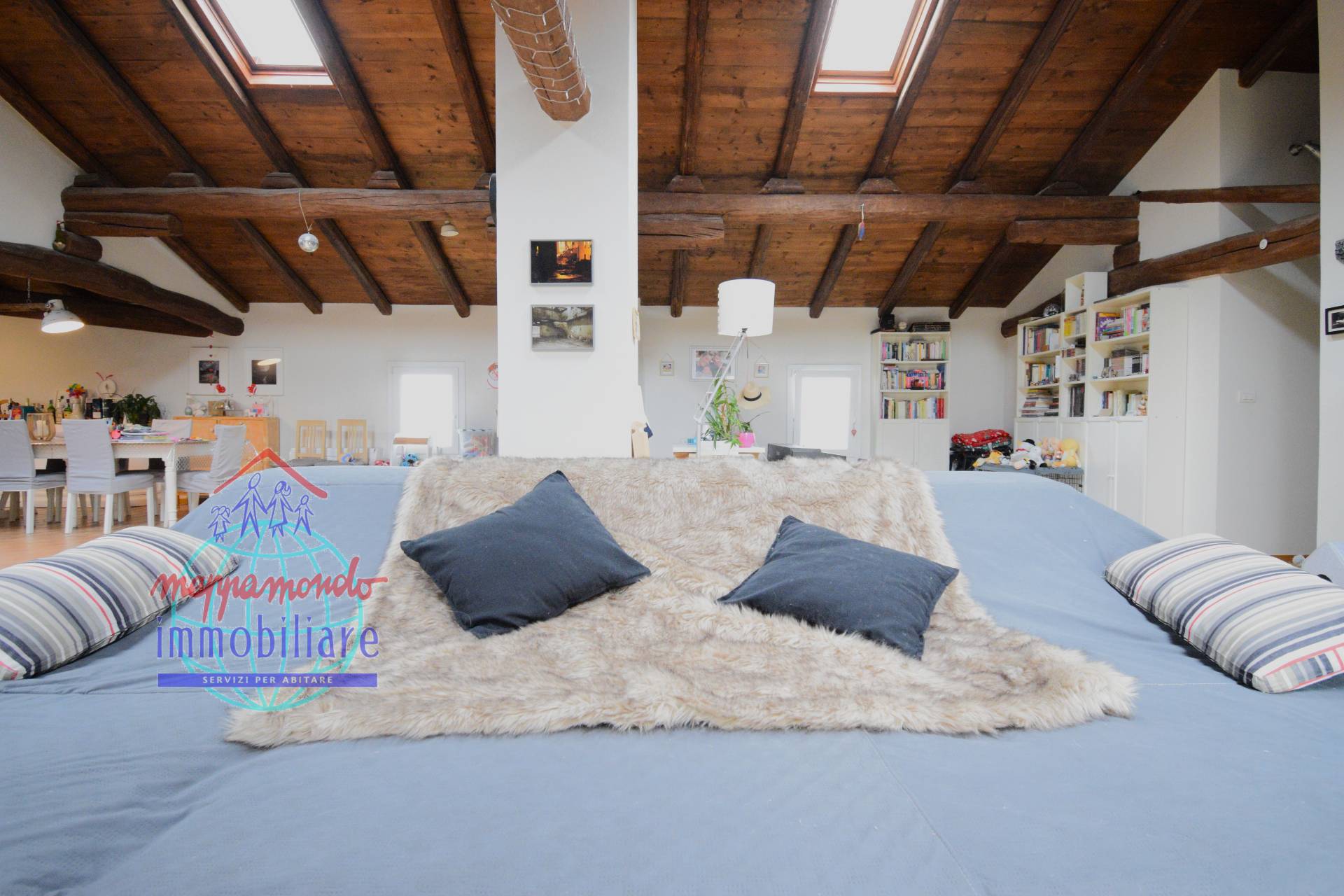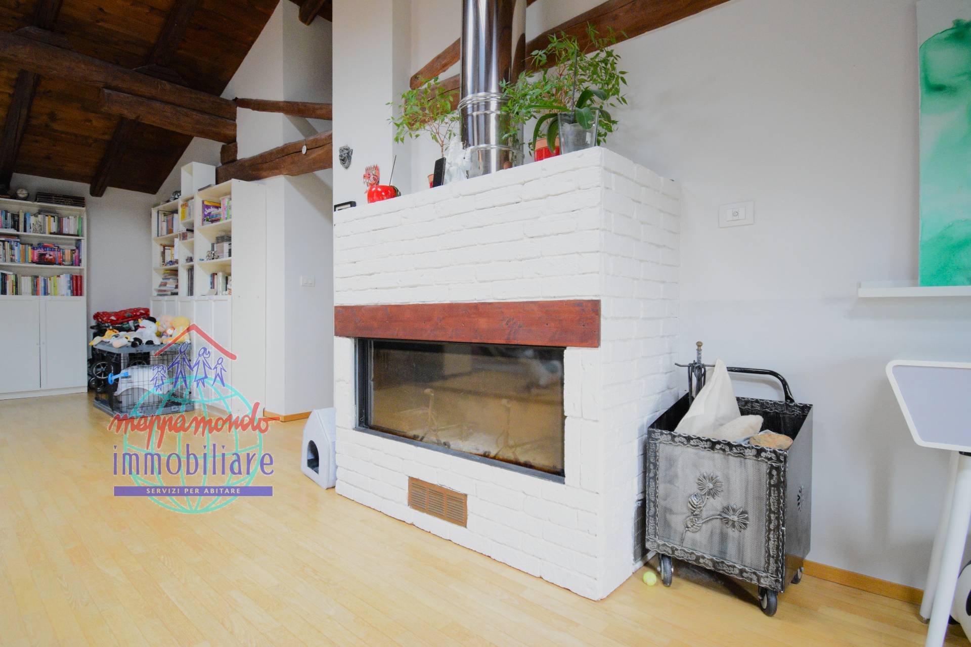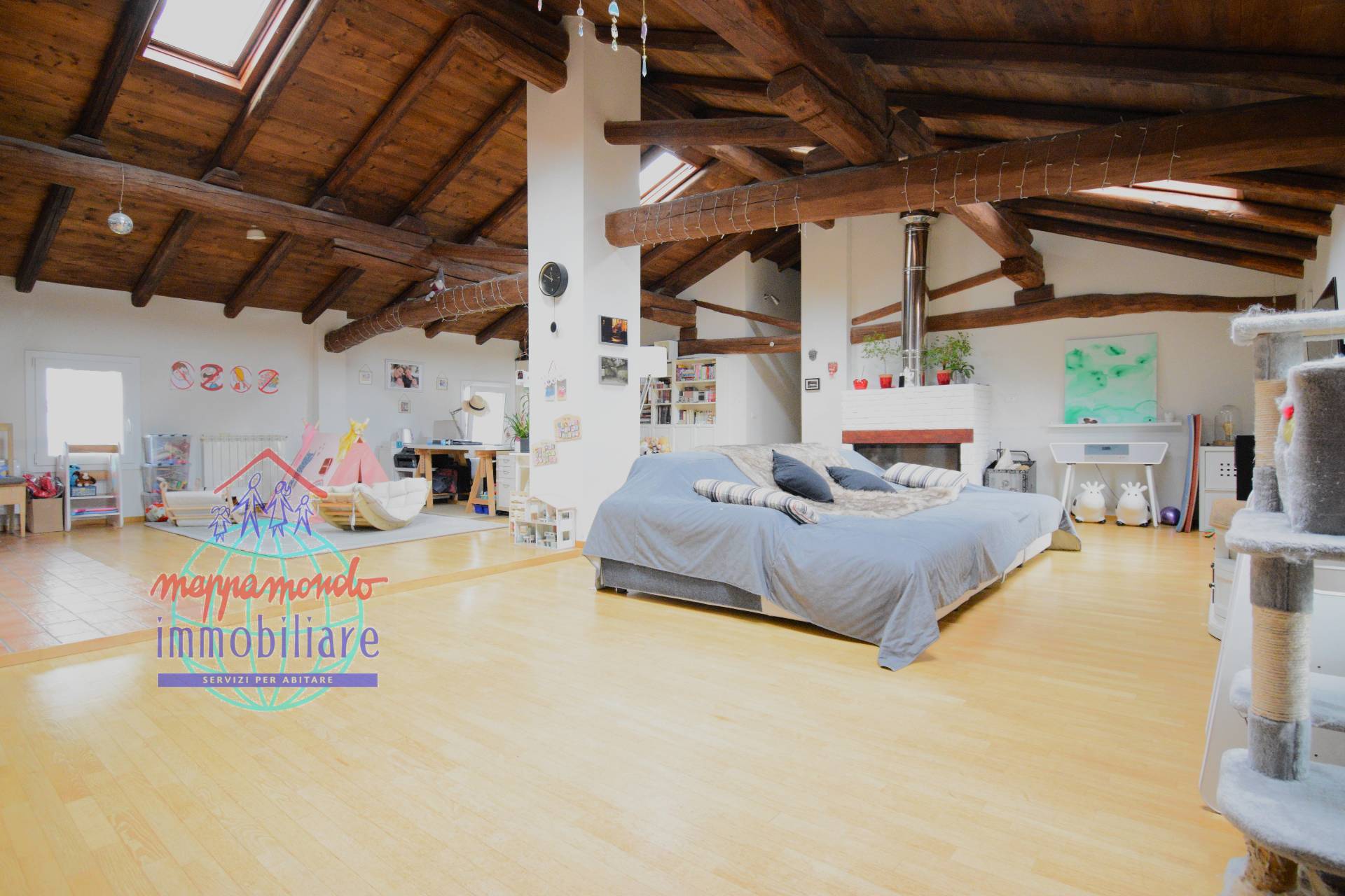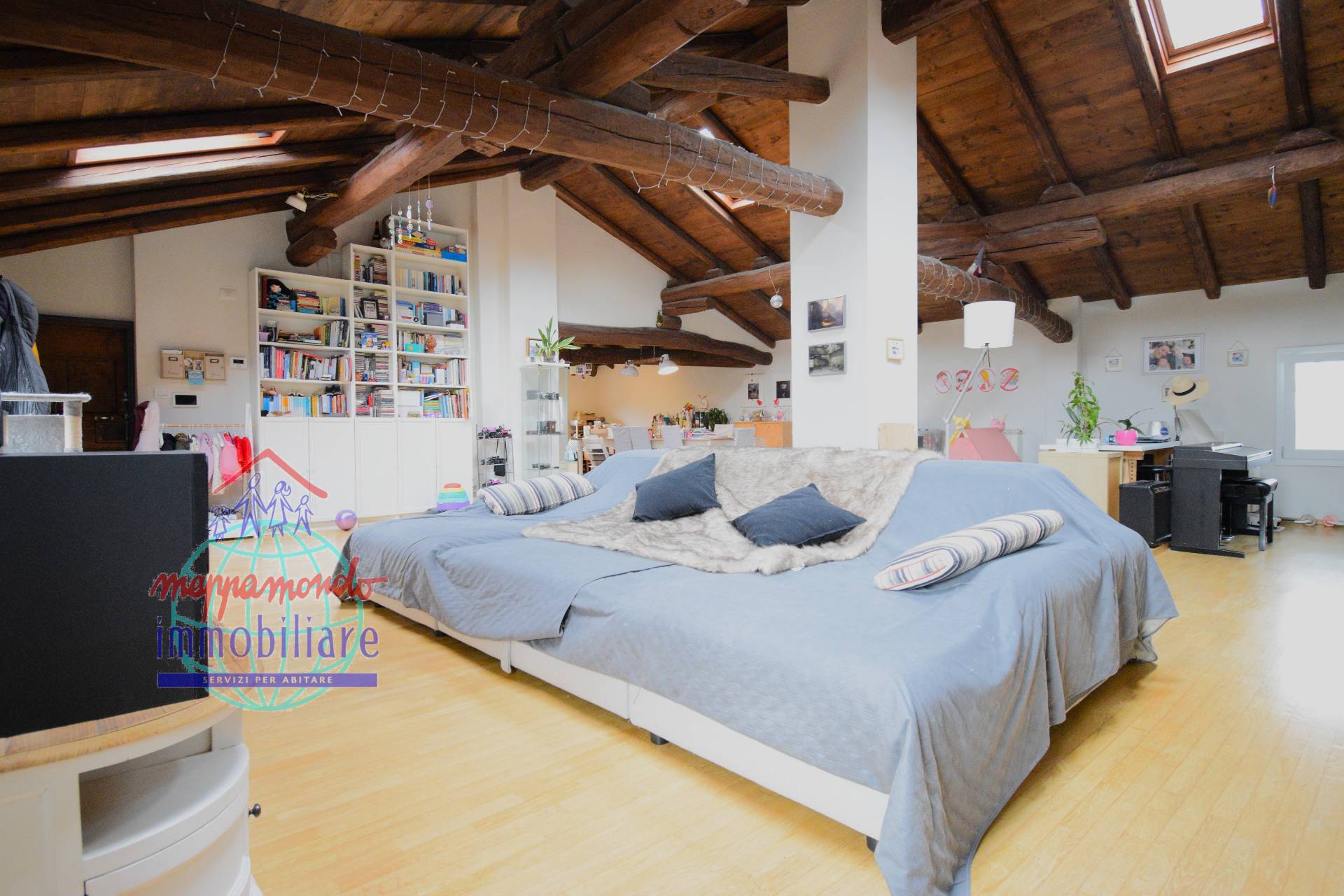 Ampio Loft con travi a vista, camino e parco privato a Bentivoglio (BO) In unoasi di pace e riservatezza, proponiamo in vendita una residenza unica nel suo genere: un ampio appartamento situato al piano secondo di una soluzione bifamiliare.