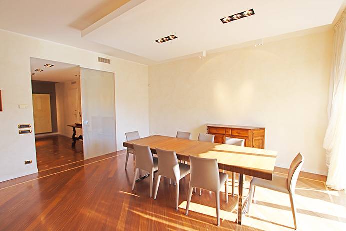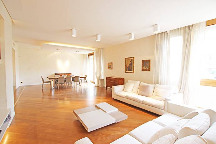 L'immobile stato completamente e recentemente ristrutturato dotato di splendidi pavimenti in parquet, impianto di riscaldamento e raffrescamento condominiale, infissi termici performanti, impianto luci con illuminotecnica, controsoffitti con illuminazione diffusa, impianto di aria condizionata canalizzato, bagni in marmo pregiato, 2 ampie terrazze.