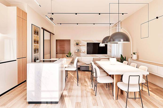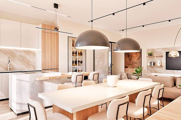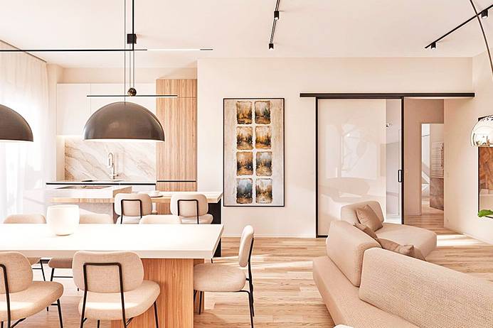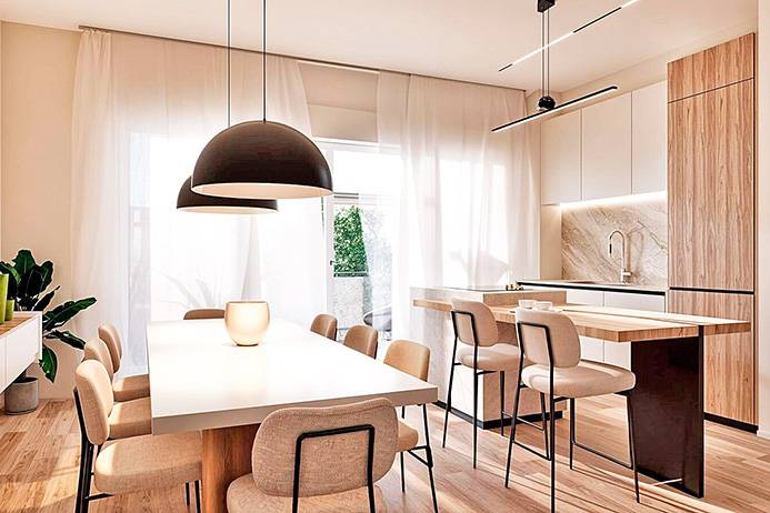 Internamente l'appartamento sar composto da ampio ingresso, ampio soggiorno con cucina open space con accesso alla terrazza, disimpegno con zona lavanderia, 3 ampie camere da letto matrimoniali, 2 bagni finestrati.