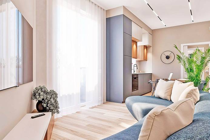 Internamente l'appartamento sar composto da ampio ingresso con zona lavanderia, ampio soggiorno con angolo cottura e accesso al balcone, disimpegno, bagno e grande camera padronale.