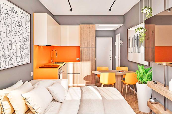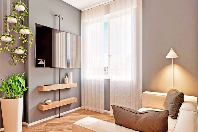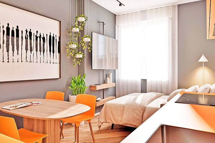 Internamente l'appartamento sar composto da ampio ingresso con cabina armadio, ampio soggiorno/letto con angolo cottura, disimpegno con zona lavanderia e bagno.