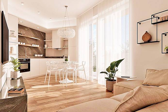 Internamente l'appartamento sar composto da ampio ingresso con zona lavanderia, ampio soggiorno con cucina open space ed accesso al terrazzo, camera padronale ampia, seconda camera singola e bagno finestrato.