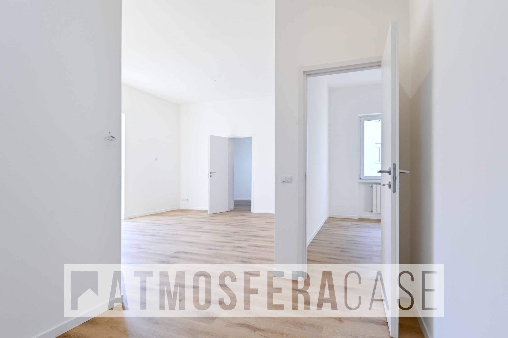 La soluzione internamente cos suddivisa: disimpegno d'ingresso, ampia e luminosissima zona giorno con cucina a vista ed accesso diretto al terrazzo, bagno padronale finestrato con doccia e possibilit di vasca, due grandi camere da letto matrimoniali.
