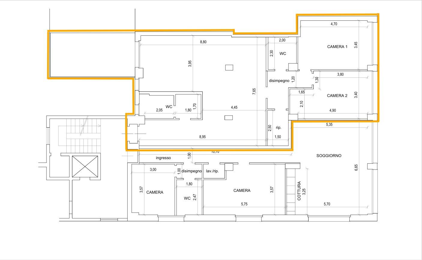 Attualmente la soluzione proposta si presenta come un ampio ufficio che verr frazionato dalla propriet e venduto da ultimare.