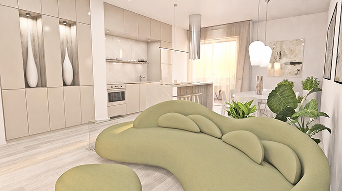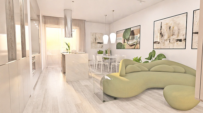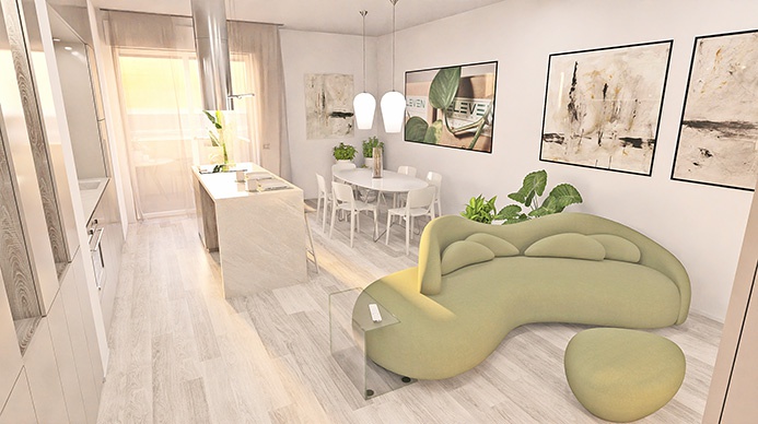 Internamente l'appartamento sar composto da ingresso, soggiorno con cucina open space con accesso al terrazzo, camera padronale con accesso al terrazzo, 2 ulteriori camere da letto di ampie dimensioni e 2 bagni.