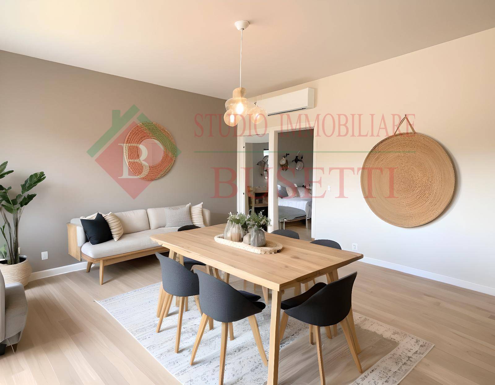 Il confort dell' appartamento garantito dai serramenti in PVC con doppio vetro, dall' impianto di raffrescamento e di riscaldamento autonomo con pompa di calore.