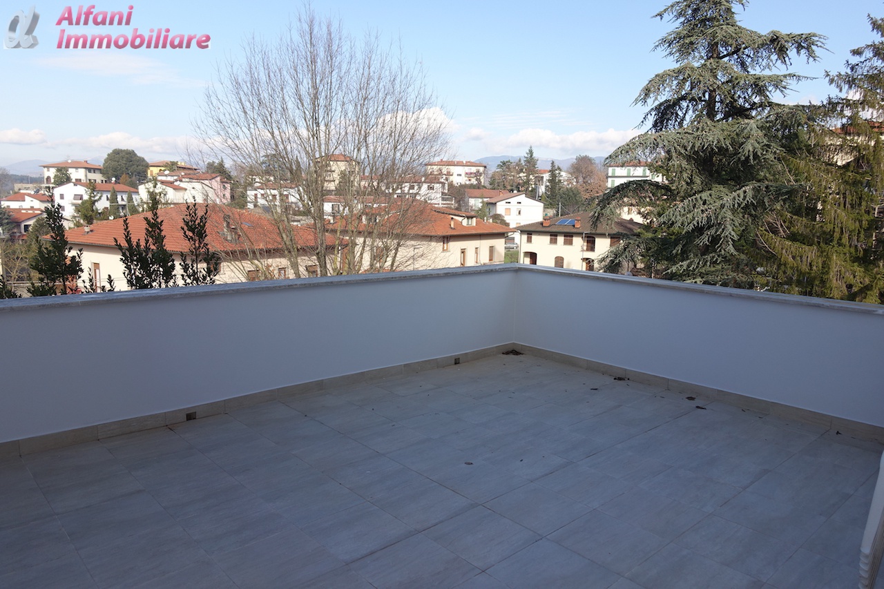 bibbiena vendesi appartamento in quadrifamiliare zona panoramica e tranquilla, composto da ingresso, cucina/tinello con camino e terrazza di 20 mq,. disimpegno, soggiorno, camera matrimoniale con camino, camera singola, due ampi balconi con bellissima veduta sul casentino, stanza da bagno, lavanderia e ripostiglio.