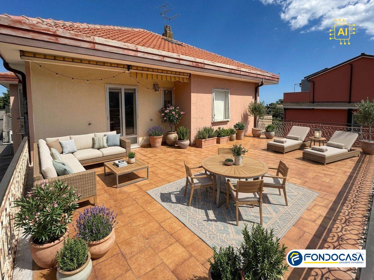 Completano la propriet uno spazioso posto auto coperto! NB: le fotografie dei terrazzi arredati e del box auto vuoto sono state generate utilizzando l'intelligenza artificiale.