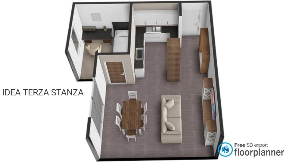 Allinterno troviamo una zona giorno ampia e luminosa, con soggiorno e cucina a vista, ideale per vivere la casa in maniera pratica e conviviale.