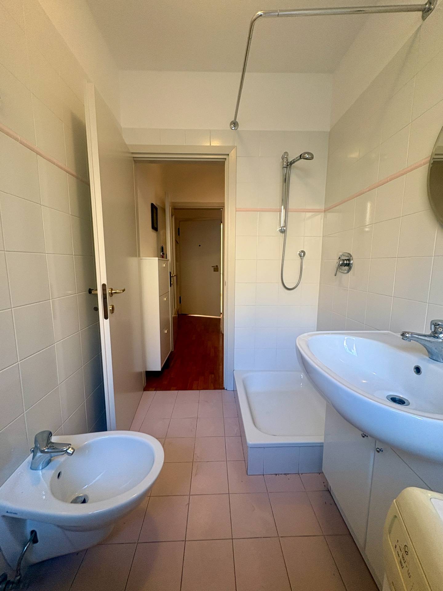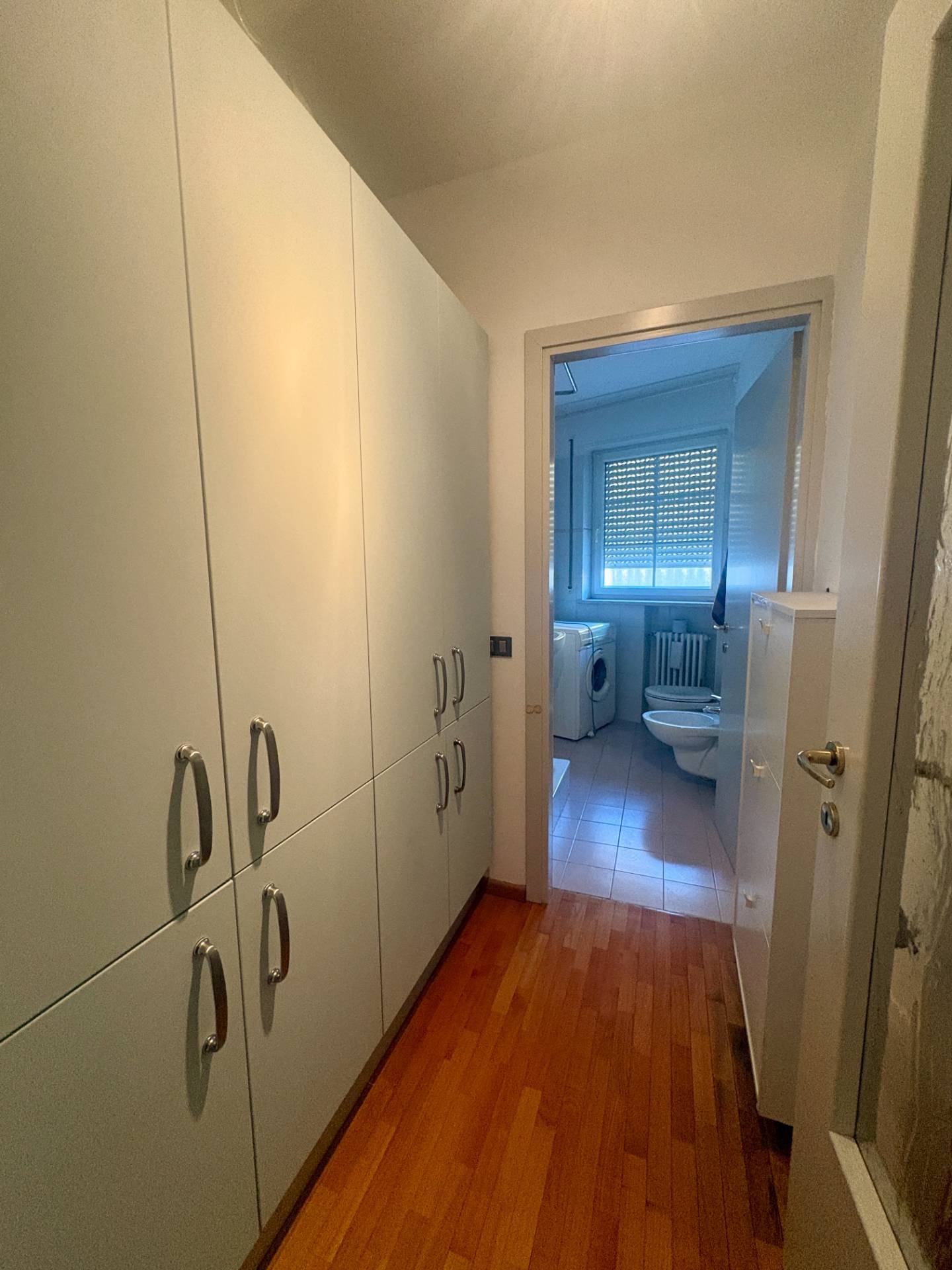 Completano la propriet un comodo antibagno con armadiatura su misura e un bagno finestrato con doccia, ben rifinito e in perfette condizioni.