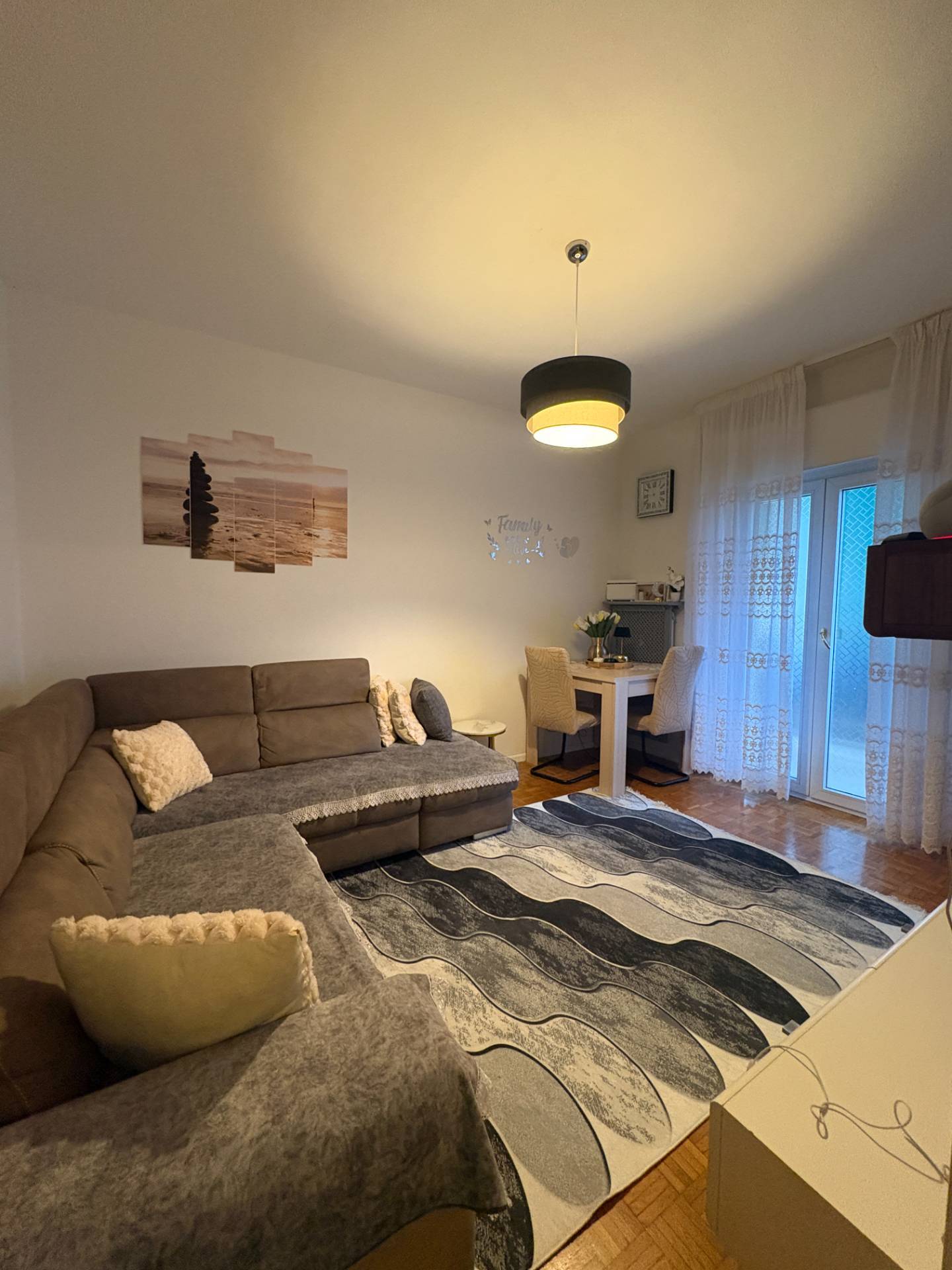 Lingresso conduce alla zona giorno composta da un soggiorno luminoso con accesso al balcone esposto a sud-ovest, che garantisce unottima illuminazione naturale nelle ore pomeridiane e serali.